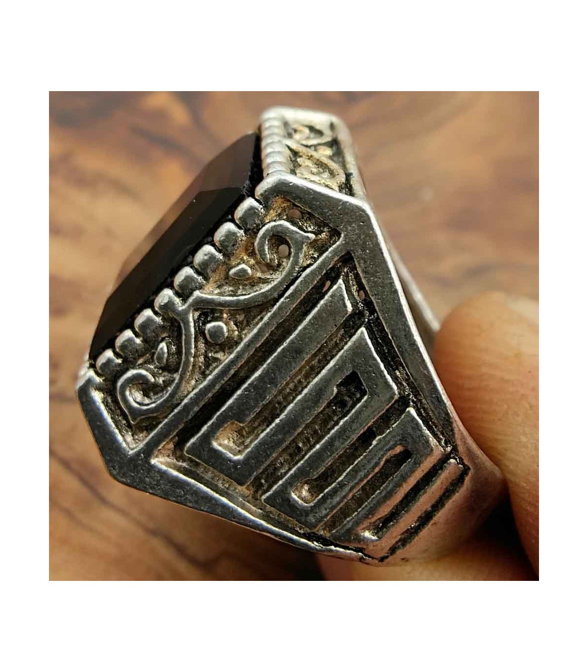 Medieval Gothic Style Ring, for gentleman. The metal is an Inox alloy. The stone is made of Synthetic Resin.