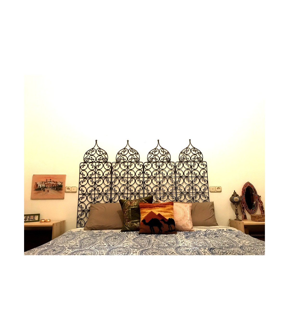 Alhambra model Arab lattice headboard.Design inspired by the geometric drawings and Arab borders of the Alhambra in Granada. The Andalusian style headboard is ideal for Arabic home decoration.