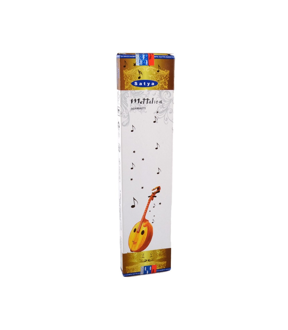 Mettalica incense from the SATYA house, known for the high quality of its products. A rhythmic sequence of impressive fragrance. Recommended product. Net weight: 20 gr
