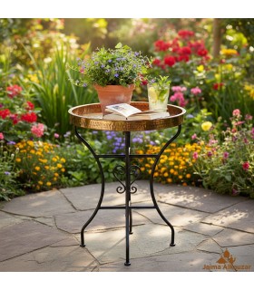 Andalusian octagonal bedside table painted by hand. Made of wood and decorated with alpaca. High quality product very well finished. Ideal for decorations and Arab environments. Available in various colors. Handcrafted.