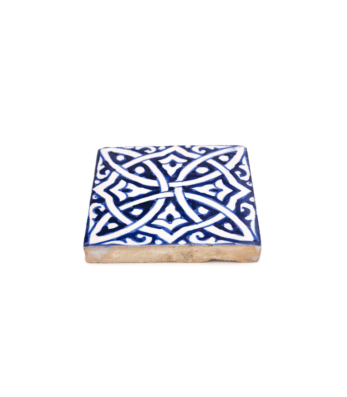 ِِAndalusí tile made by hand with Arabic motifs. Ideal for flooring, as a decorative piece, to create a mosaic, border, etc. Measurements: 10 x 10 cm Thickness: 15 mm +/-
