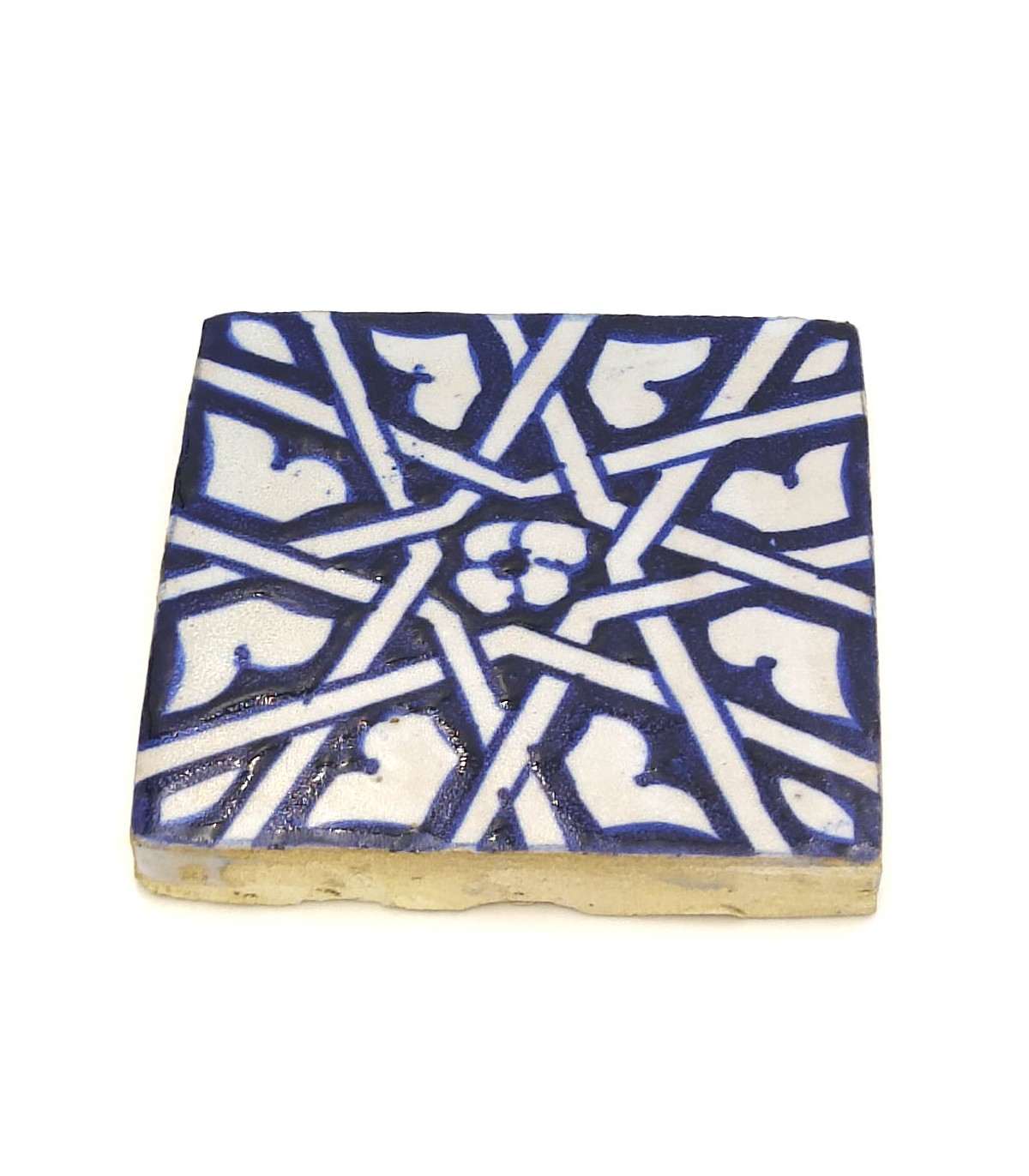 Andalusian tile made by hand with Arabic motifs. Ideal for flooring, as a decorative piece, to create a mosaic, border, etc.Measures:10 x 10 cm Thickness: 15 mm +/-