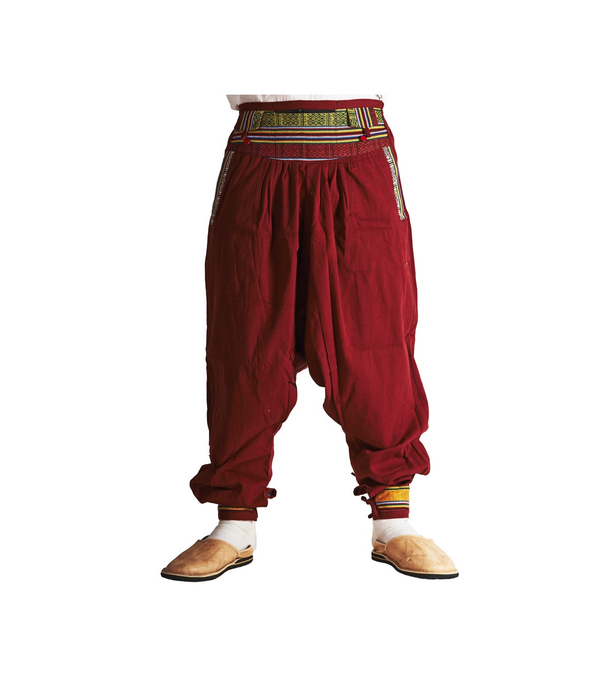 Bombacho pants made by hand with cotton and decorated with tapestry on the front, pockets and legs.