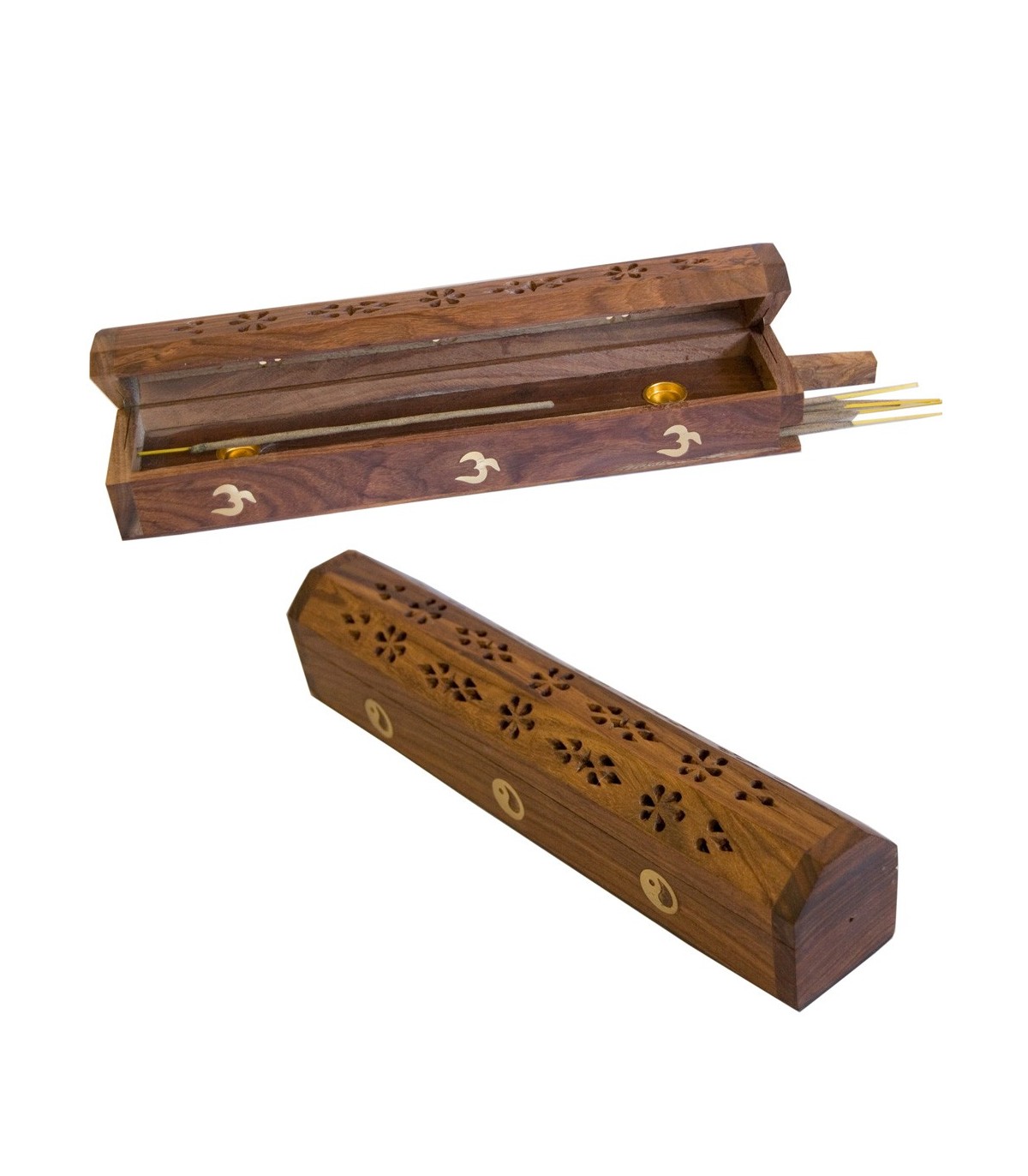 Wooden censer for cones and rods. It has a drawer to store the incense. Very pretty.