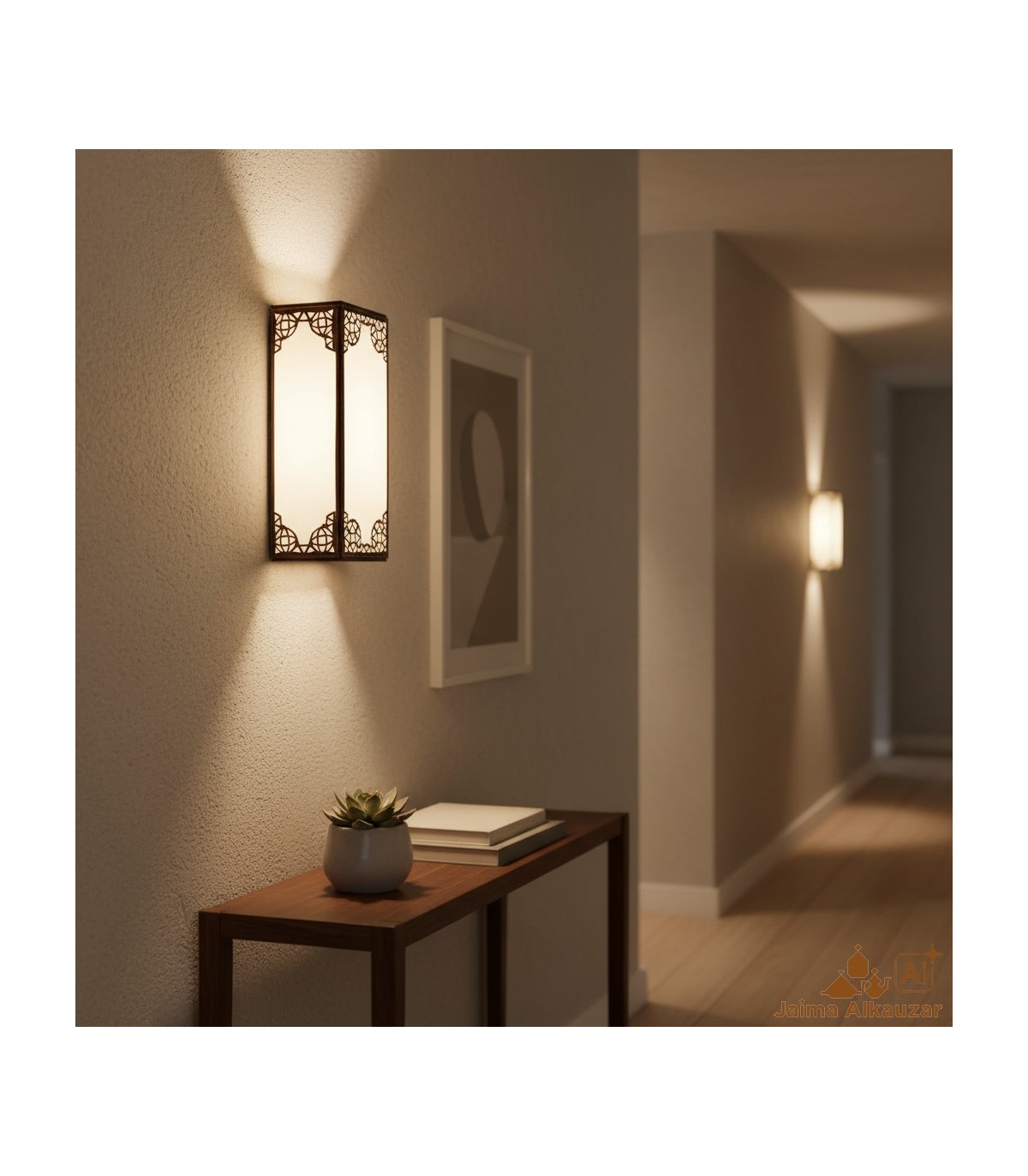 Aplique estilo árabe para pared. Aplique para decoración andalusí, realizado artesanalmente en Albolote, Granada. Ideal para la decoración árabe moderna, morisca andalusí. Realizado en madera laminada y metacrilato....