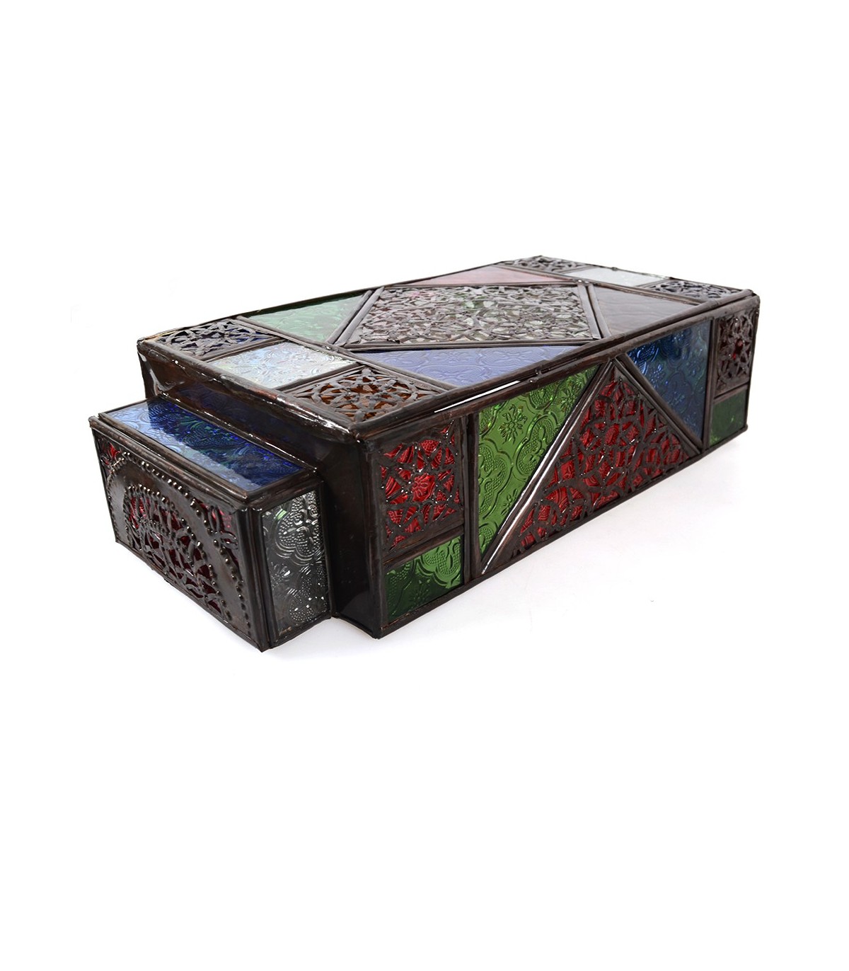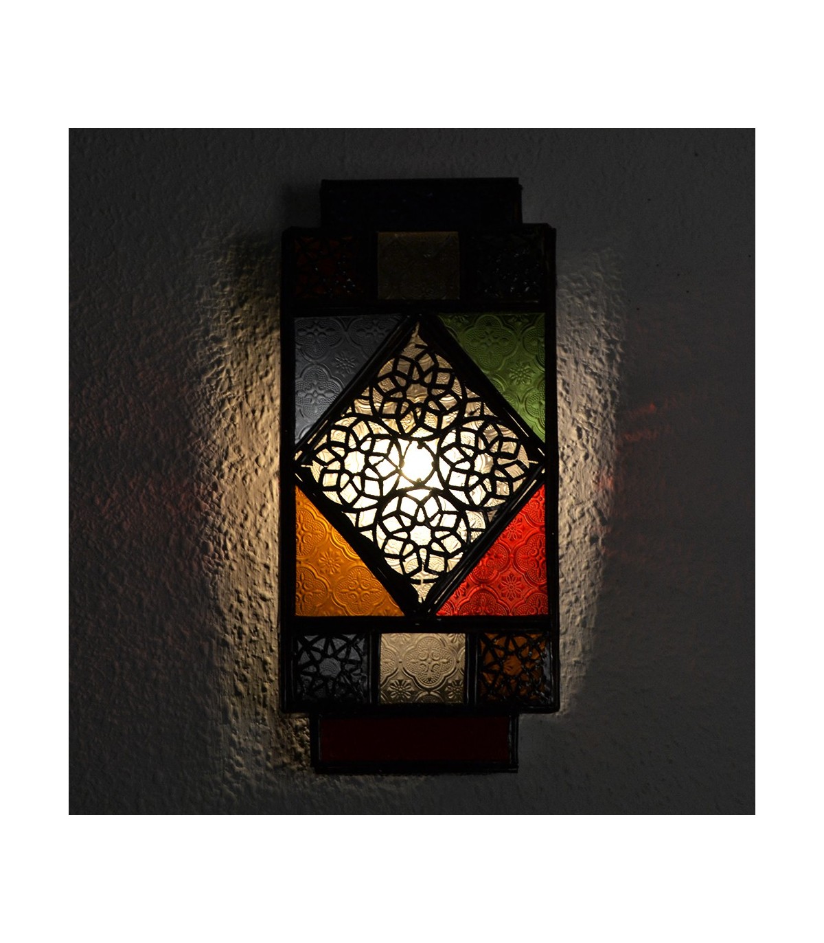 Aplique pantalla para pared marroquí estilo Andalusí decorado con chapa calada y cristal Blanco translucido, realizado artesanalmente en Marruecos.