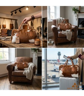 Bolso de viaje artesanal marroquí en piel de vacuno con pelo natural intacto. Elegante, espacioso y único, ideal para quienes buscan estilo y autenticidad en un producto exclusivo.