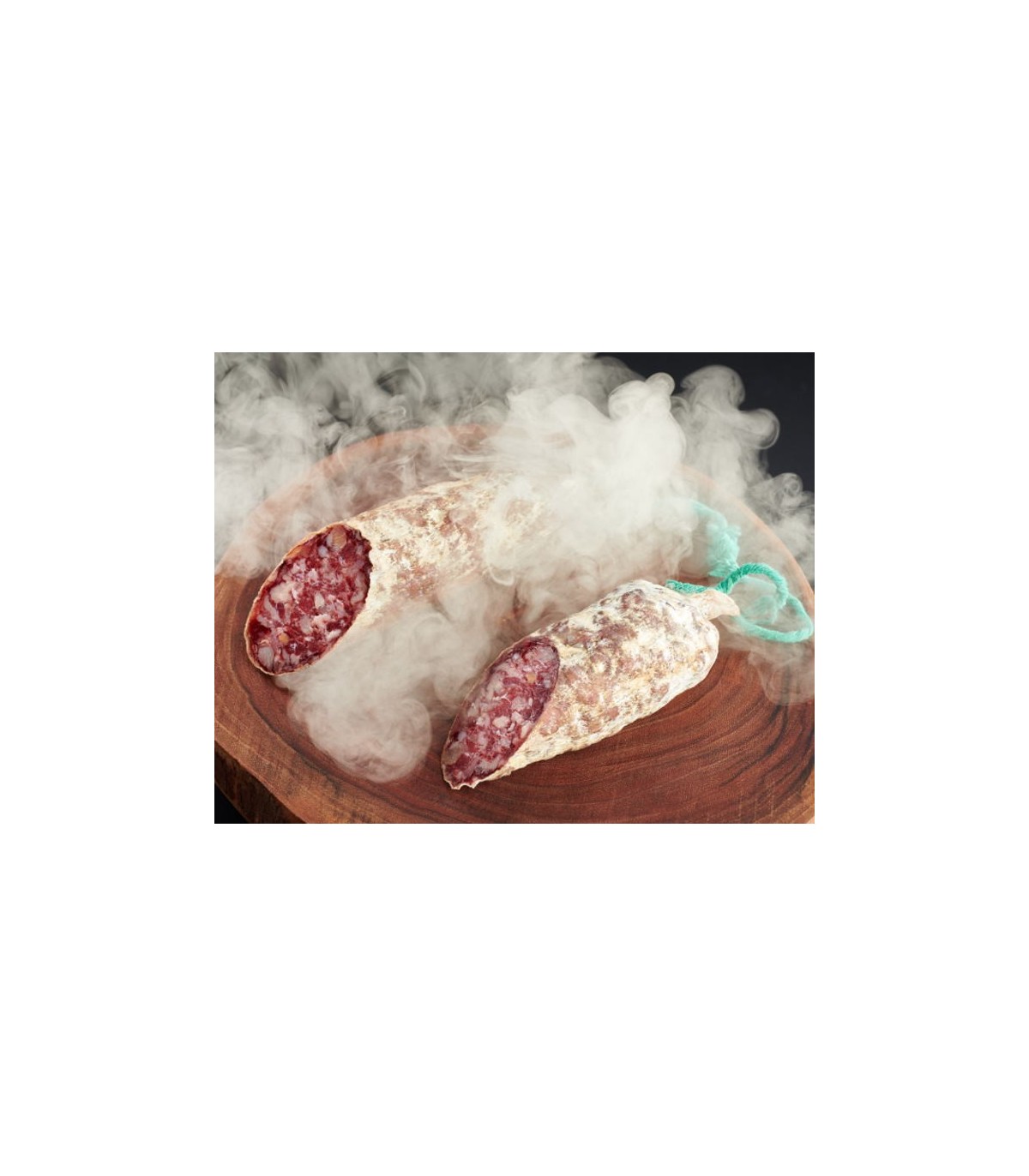 Nuestro salchichón ahumado halal de ternera se elabora con carne de alta calidad y se somete a un proceso de ahumado natural que realza su sabor y aroma. Tras una curación tradicional y un secado cuidadoso, se obtiene un embutido equilibrado, con notas ahumadas profundas, textura firme y un carácter auténtico. Ideal para quienes buscan un producto gourmet halal con un sabor distintivo.