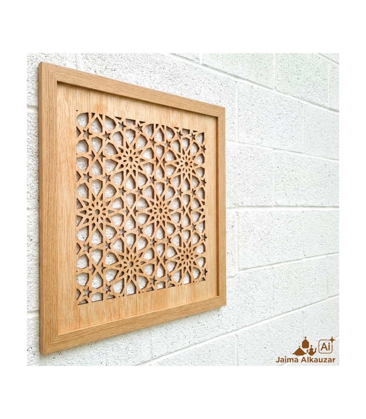 Cuadro decorativo, celosia o marco para espejo Árabe de madera laminada de 5 mm cortada por laser, con diseños geométricos.