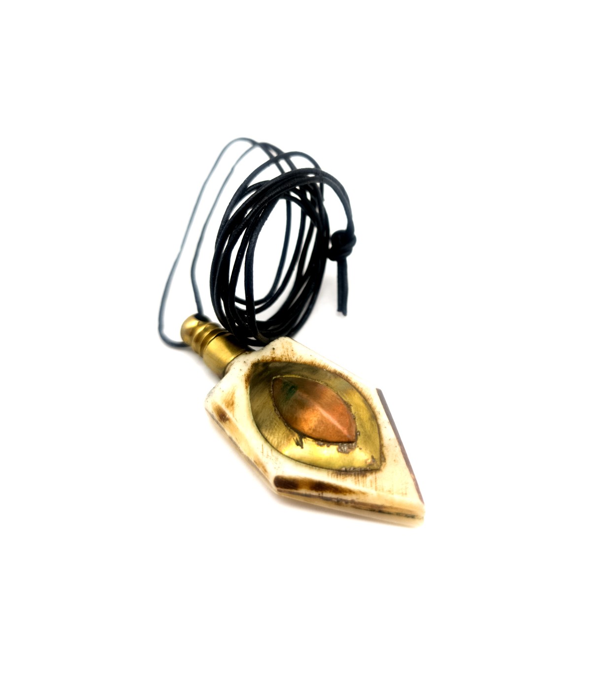 Porta khol para llevarlo siempre encima de una manera elegante y original. Estilo Bohemio, y autentico, Realizado con Hueso, metal y cuero.