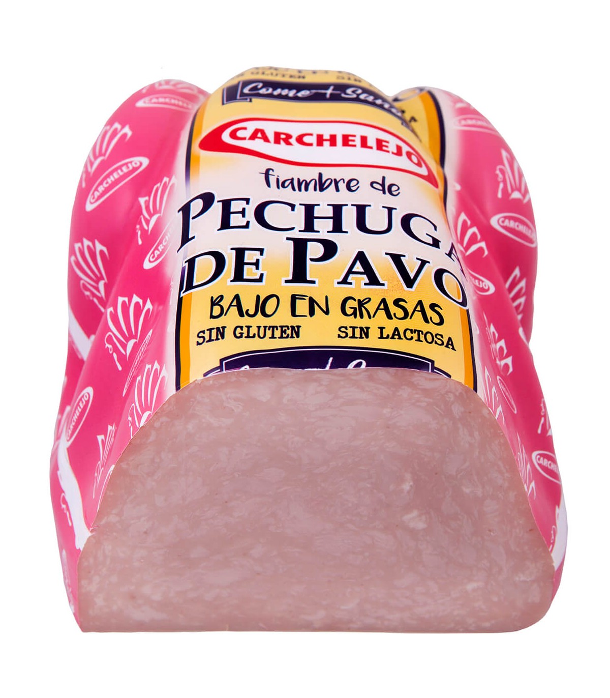 Fiambre Pechuga de Pavo HALAL Baja en Grasas Sin Gluten Sin Lactosa Come Sano de la marca española Carchelejo, garantía de calidad.