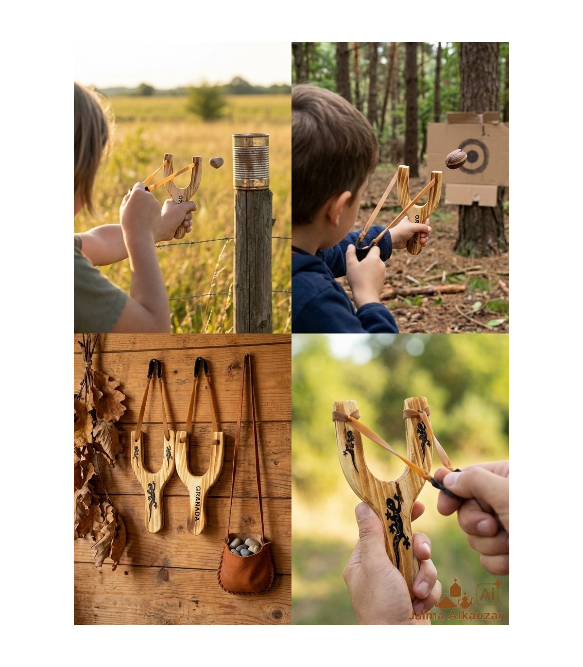Descubre nuestro tirachinas artesanal pensado especialmente para niños y niñas y para quienes buscan un clásico tradicional con un diseño seguro y manejable. Con unas medidas de 18 cm de alto y 8 cm de ancho, este tirachinas combina mango de madera natural, goma elástica reforzada y una badana de cuero resistente para colocar la munición. Su formato ergonómico y ligero hace que sea fácil de usar incluso para manos pequeñas, perfecto para juegos al aire libre y para desarrollar la coordinación ojo-mano.