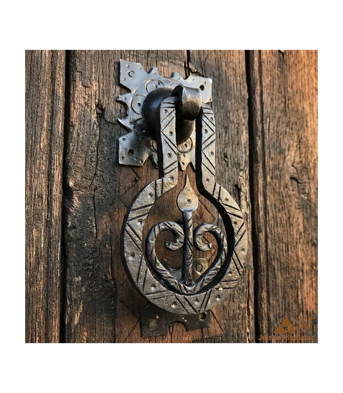 Tirador llamador de Forja para puertas rusticas de Madera, le dará un toque mediaeval a su puerta rustica, para cortijos, fincas de recreo....