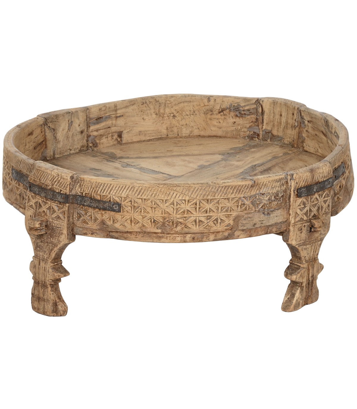 Añade un toque de elegancia rústica a tu hogar con esta mesa de madera tallada en acabado natural. Perfecta para sofás bajos tipo tarba árabe. Dimensiones: 65x65x26 cm alto.