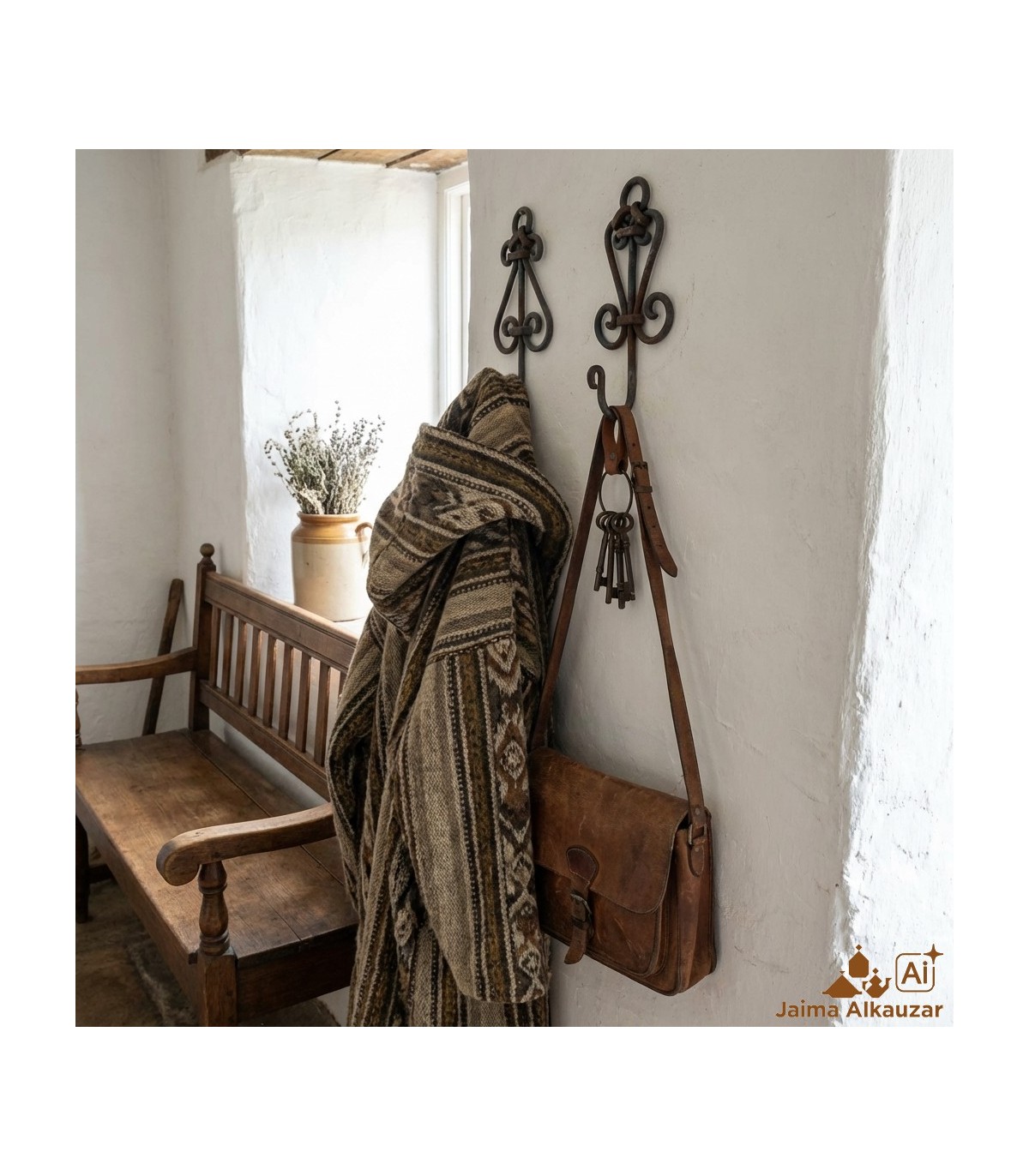 Perchero de Forja artesano marroquí, percha o colgador con 1 brazo colgante, AL ESTILO ARABE MARROQUI. Elaborado artesanalmente con hierro forjado. Gran calidad.