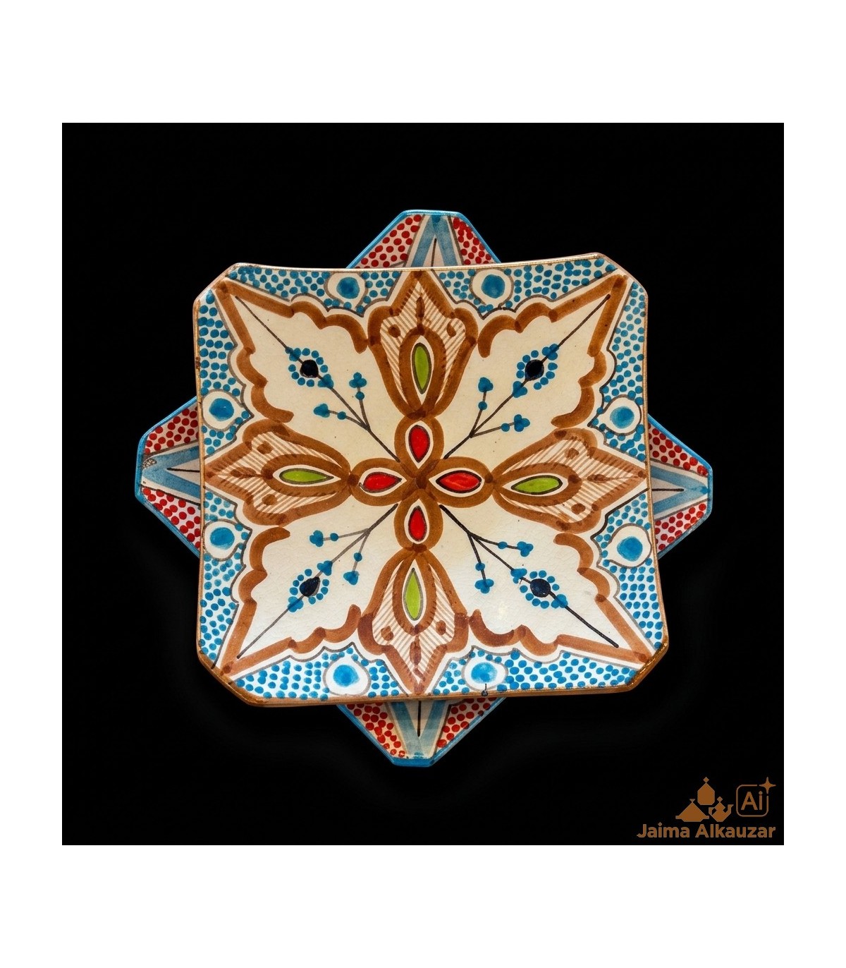 Cuenco de Cerámica de la famosa ciudad Asfi o Safi de Marruecos. Donde fabrican cerámica al estilo andalusí que se transmite de maestro a maestro, manteniendo la técnica y colores de la antigua Al-andalus.