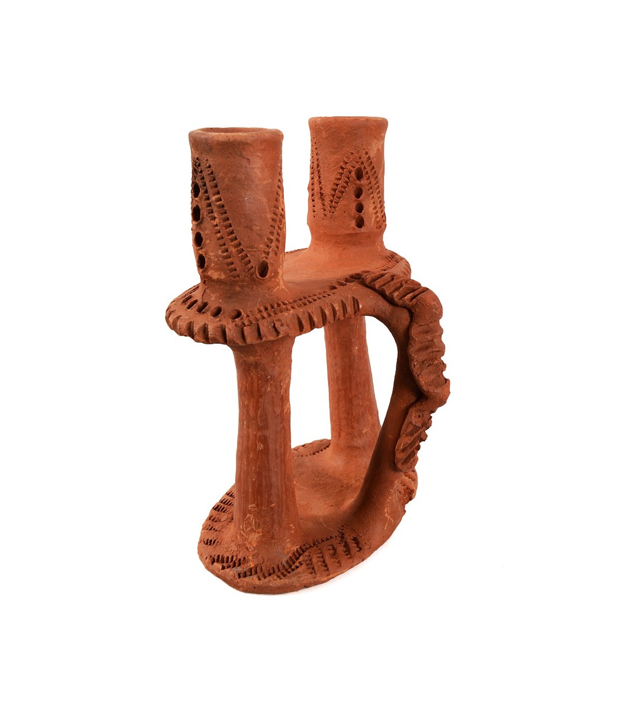 Tiene un asa lo que le convierte en un portavelas transportable.