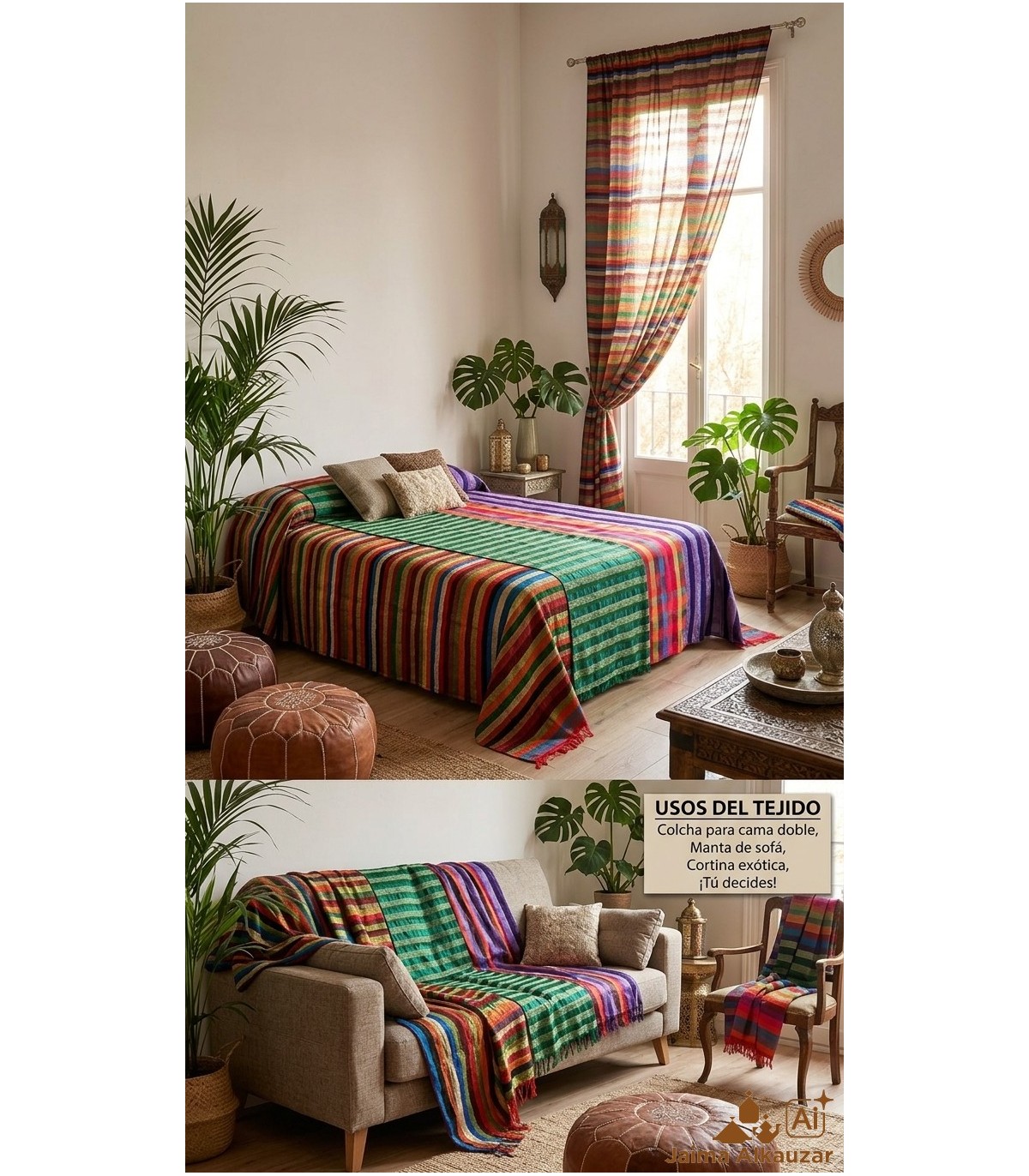 Versatilidad decorativa: Una sola pieza de tela te permite renovar la estética de tu cama, dar una nueva vida a tus muebles del día a día o vestir tus ventanas con un auténtico estilo boho chic.
