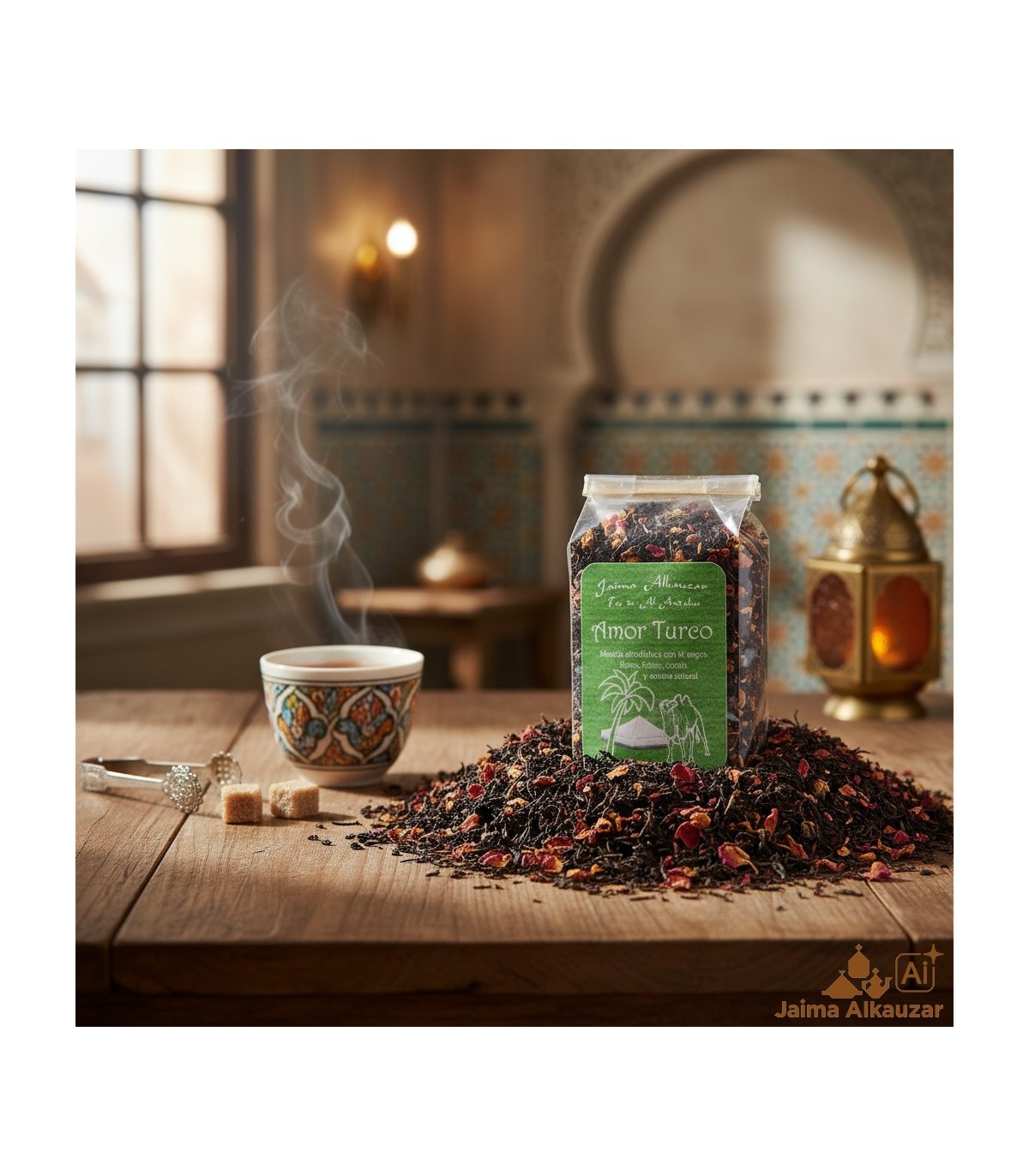 Amor Turco: mezcla afrodisíaca con té negro, flores, frutas, canela y aroma natural.