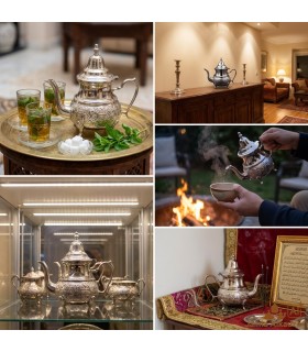 Tetera apta para cocina de inducción, para hacer y tomar te moruno o cualquier tipo de infusión o te. Realizada en Acero inoxidable con diseño morisco en colores plateado con detalles en Dorado.Se puede usar en varios...