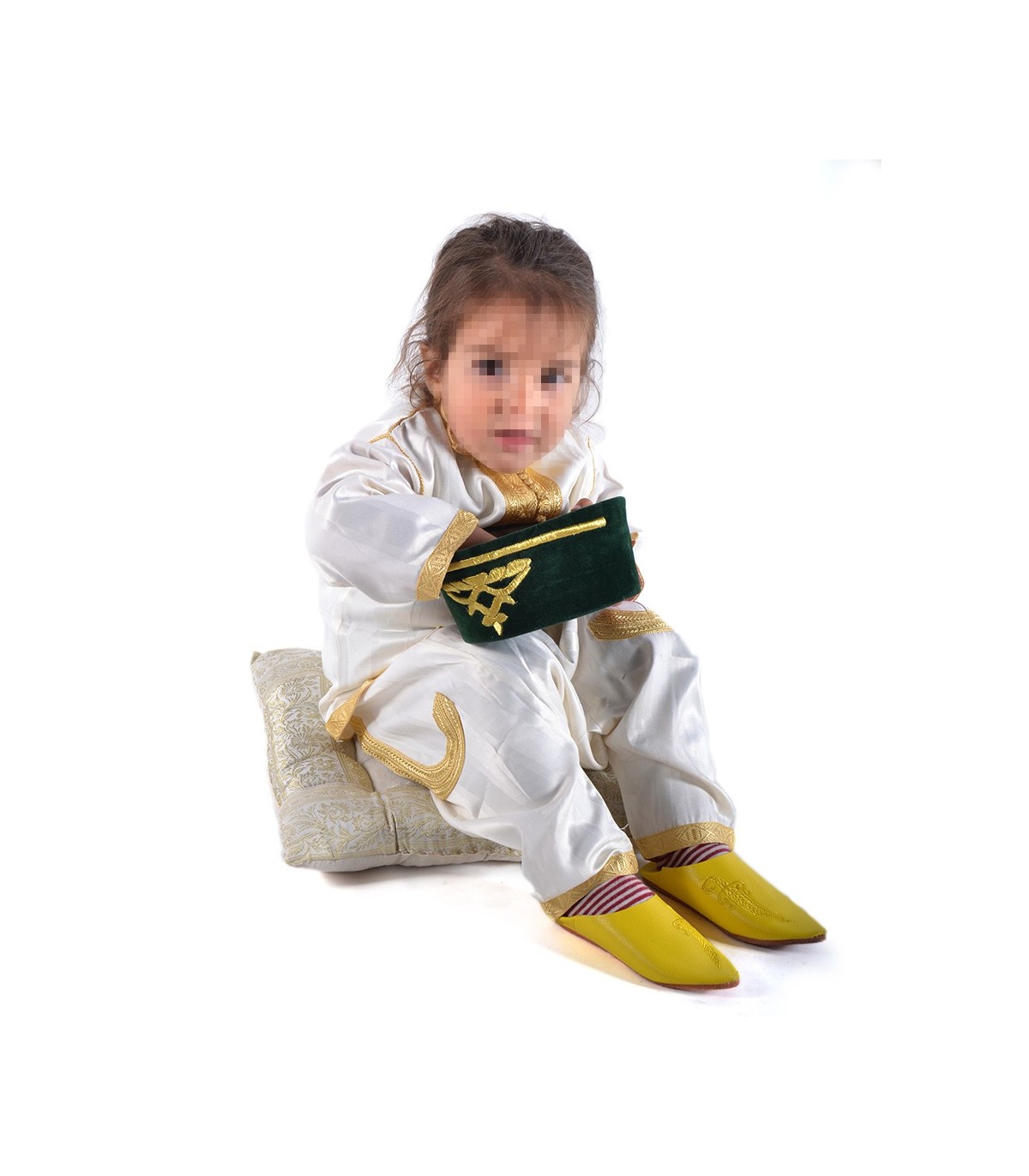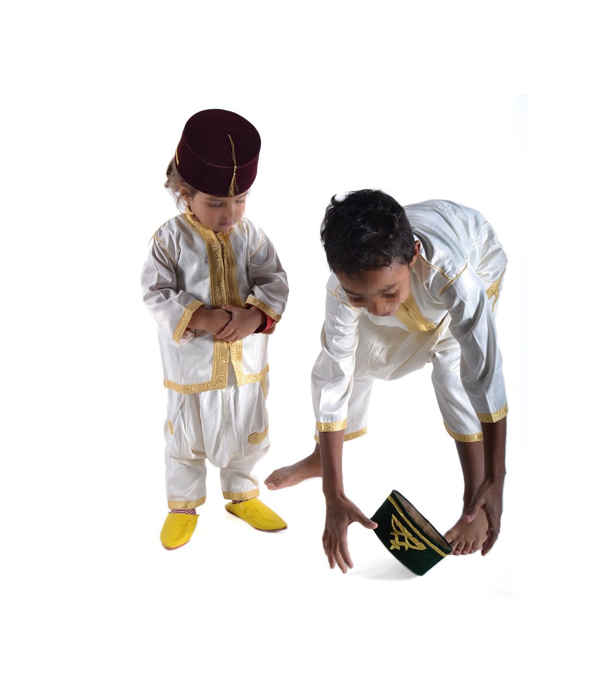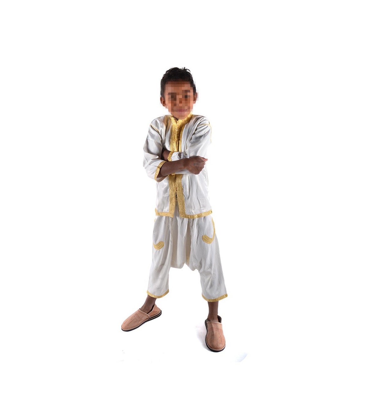 Traje tradicional y original marroquí para fiestas y celebraciones (jabador Beldi). Consta de 2 piezas, (un pantalón bombacho y un túnica larga hasta las rodillas aproximadamente).
