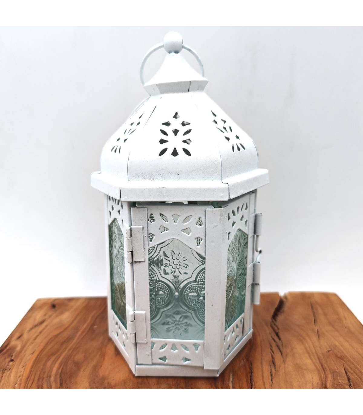 Porta velas de metal en bronce y latón pintado a mano, artesanía India. Estilo Vintage.