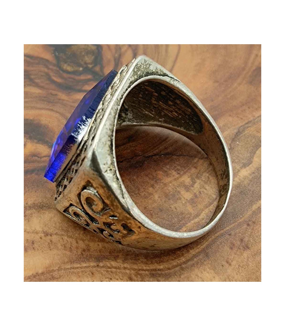 Bague unisexe en alliage d'acier inoxydable - Pierre bleue - Style gothique médiéval - Modèle Arbaa Azrak