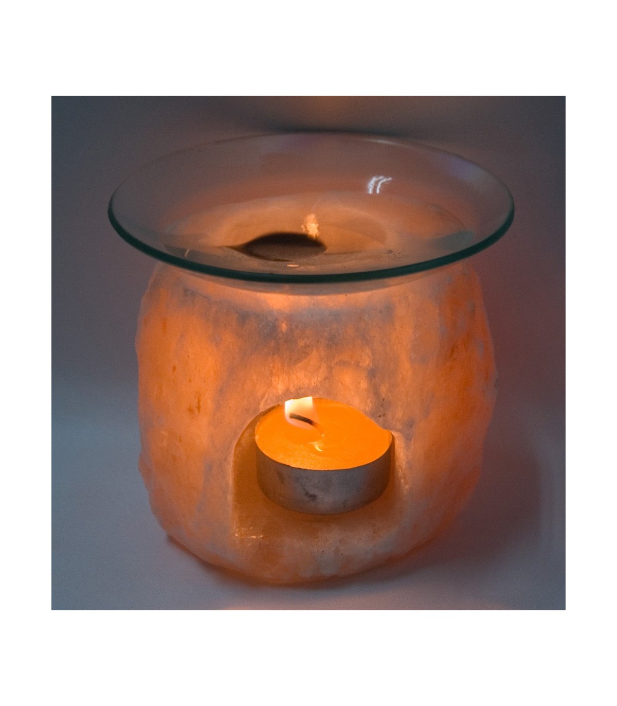 Sel Himalaya frontale ouverture et verre plaque du brûleur.