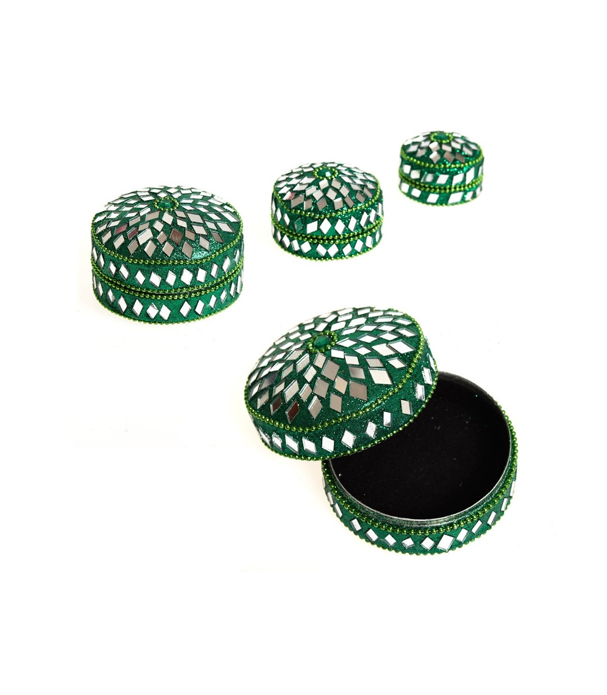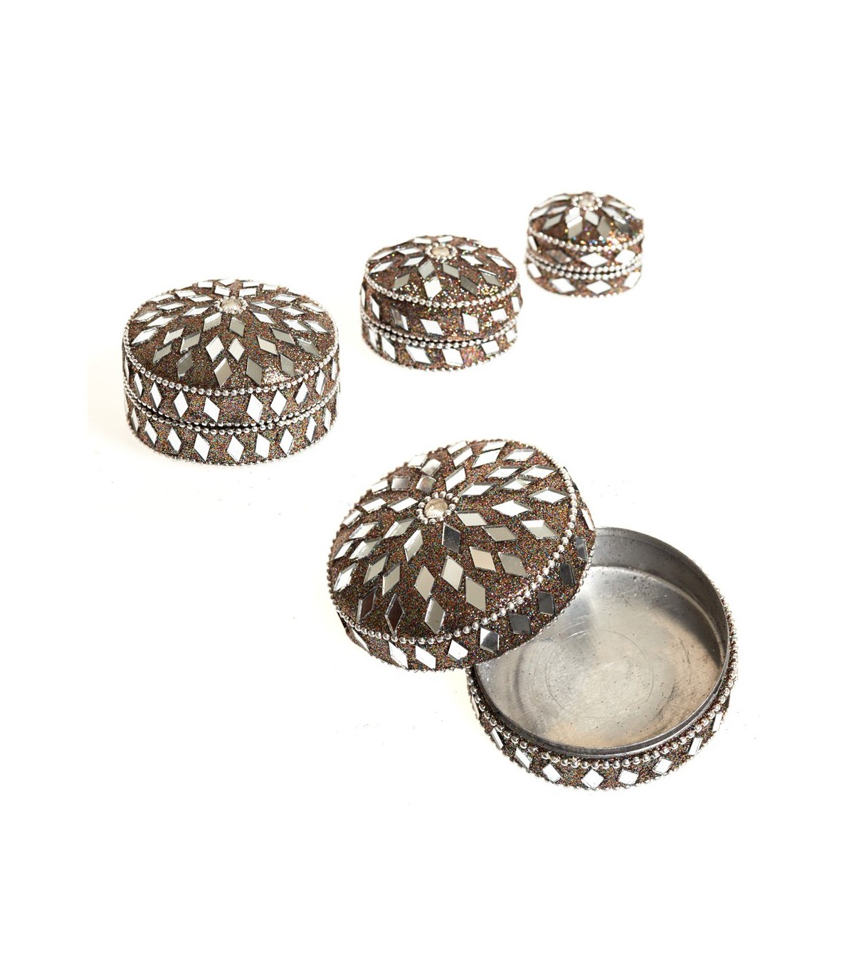 Jeu 3 boîtes orné de brillants et revêtu intérieurement à paillettes.