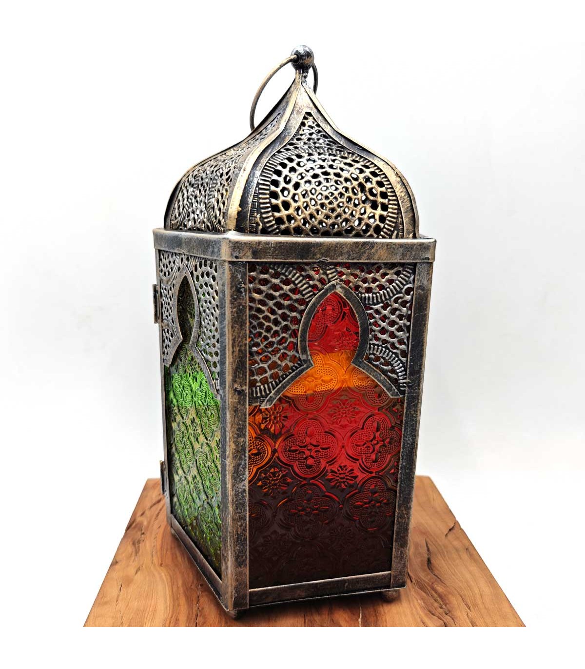 Lanterne ou lanterne marocaine fabriquée artisanalement au Maroc par des maîtres artisans. Idéal pour la décoration andalouse, bougeoirs de table, avec des cristaux multicolores qui créeront une atmosphère agréable et...