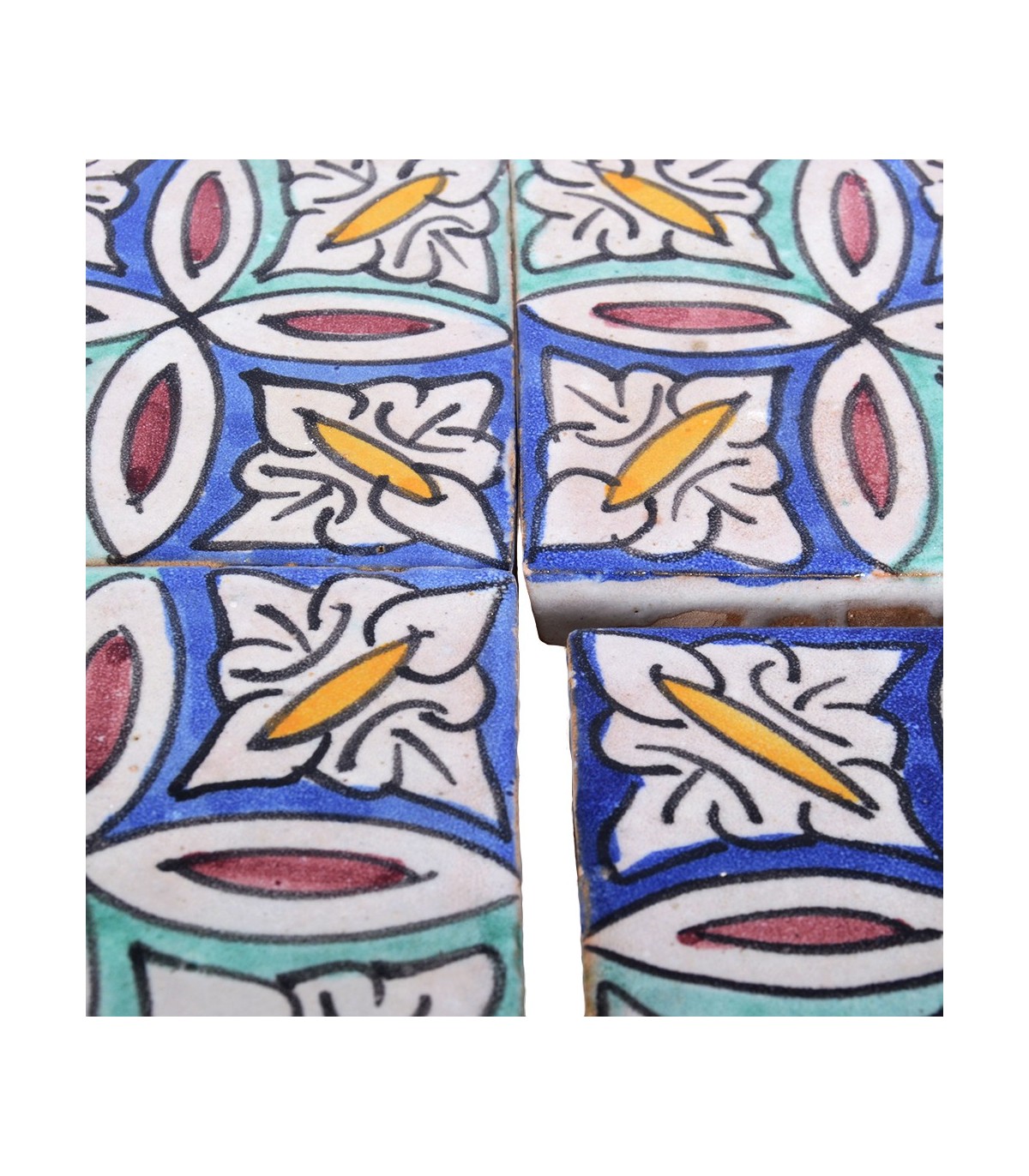 Carrelage andalous fait à la main avec des motifs arabes. Idéal pour le plancher comme pièce décorative, pour créer une mosaïque, garnitures, etc.. Dimensions : 10 x 10 cmGrosor : 15 mm +/-