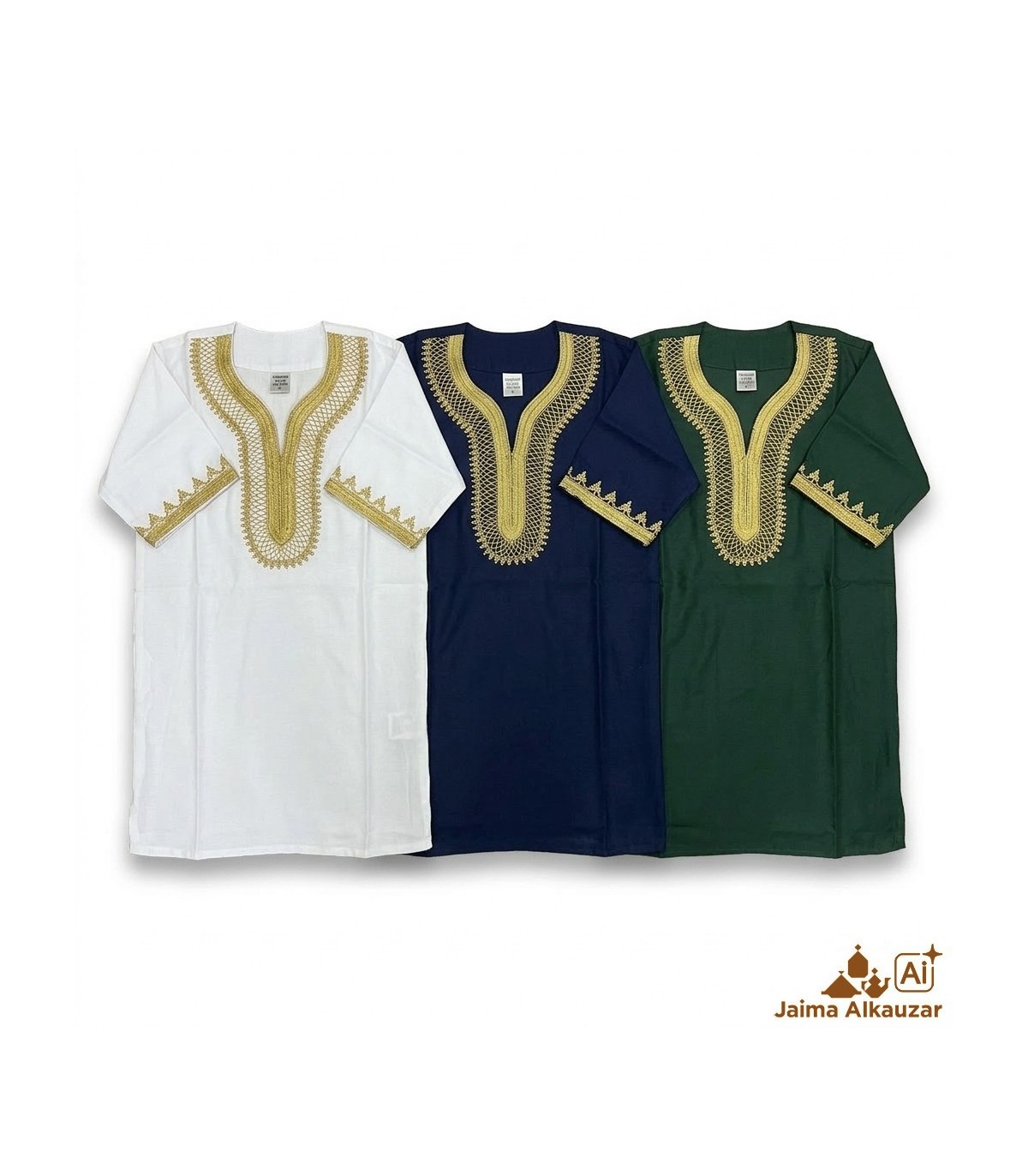 Cette belle chemise marocaine brodée dans le style arabe andalou allie élégance et confort. Sa couleur avec des broderies dorées en fait un vêtement unique. Disponible en plusieurs tailles, elle est parfaite pour l'été grâce à son tissu agréable et sa coupe ample, qui favorise la transpiration.