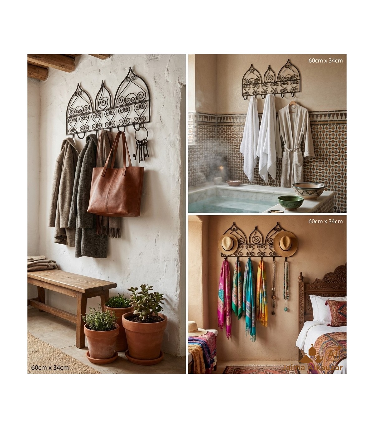Parfait pour accrocher des sacs, des manteaux ou même les clés car il est assez spacieux. Créez une atmosphère unique grâce à son design géométrique maure.