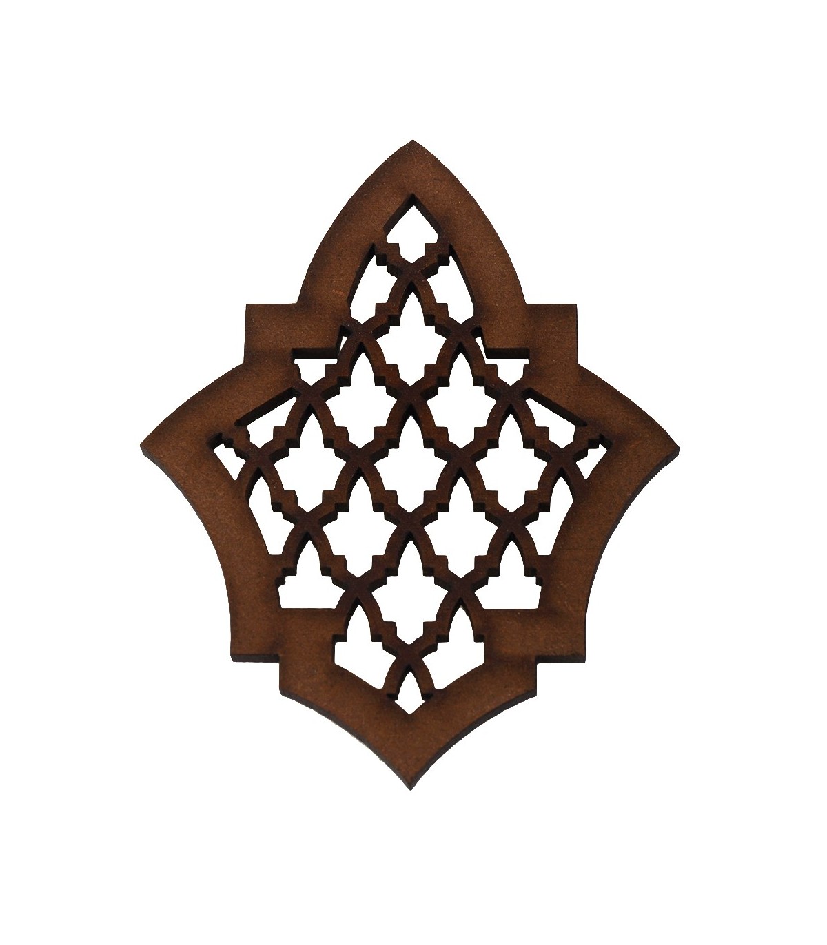 Structure en bois lamellé verni. décoré de motifs arabes inspirés de l'Alhambra de Grenade. Conception en forme de porte andalouse mauresque. Idéal à placer comme cadre miroir ou comme cadre photo.
