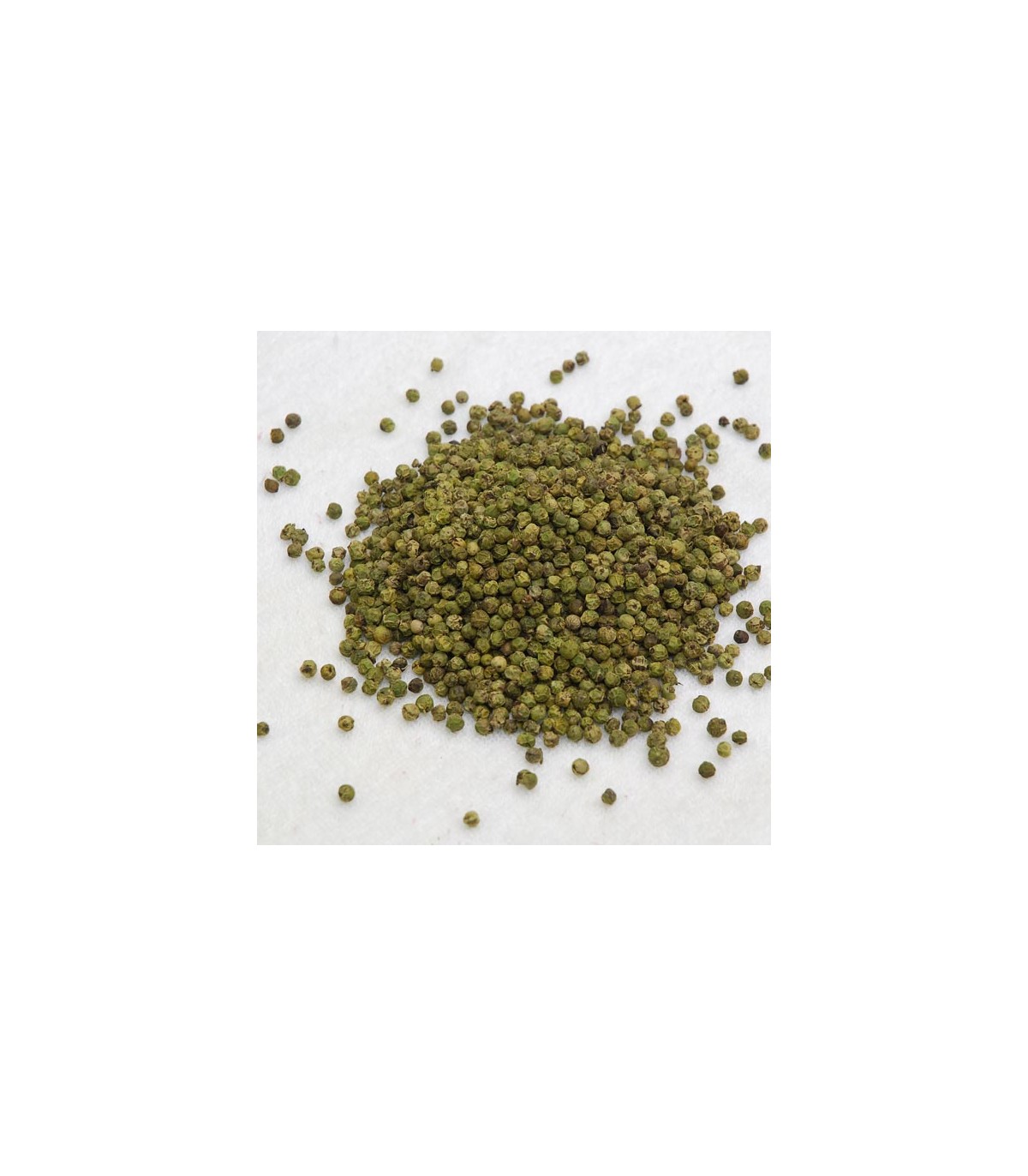C'est le fruit incomplètement mûr de Piper nigrum; soumis à un processus de conservation qui préserve sa couleur naturelle.