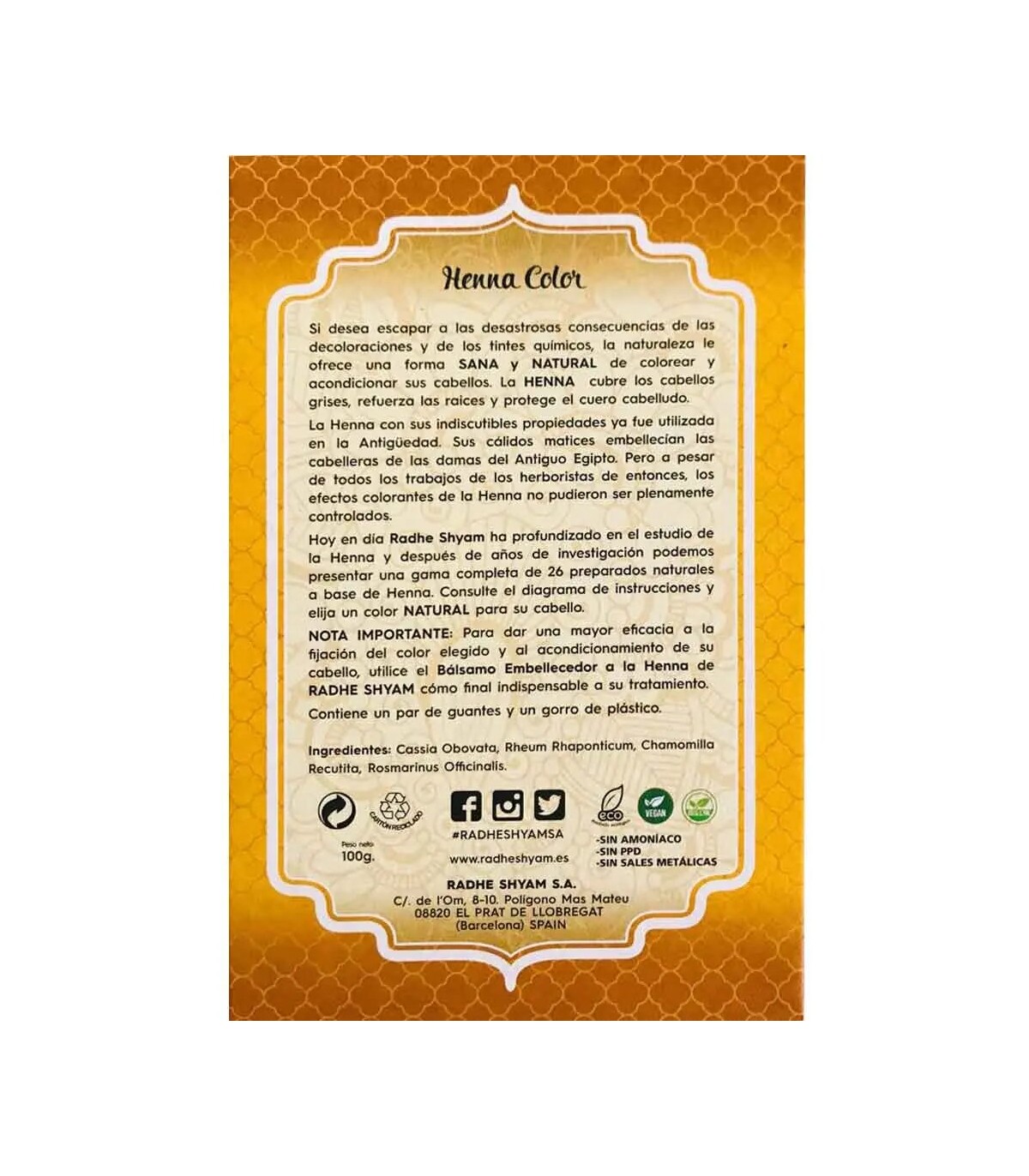 NOTA IMPORTANTE: Para dar una mayor eficacia a la fijación del color elegido y al acondicionamiento de su cabello, utilice el Bálsamo Embellecedor a la Henna Spiritual, como final indispensable a su tratamiento (es recomendado para una mayor duración del color, pero no obligatorio).