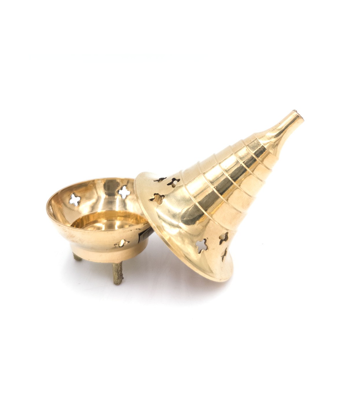 Encensoir de cônes ou de résines avec du carbone fait à la main en bronze.