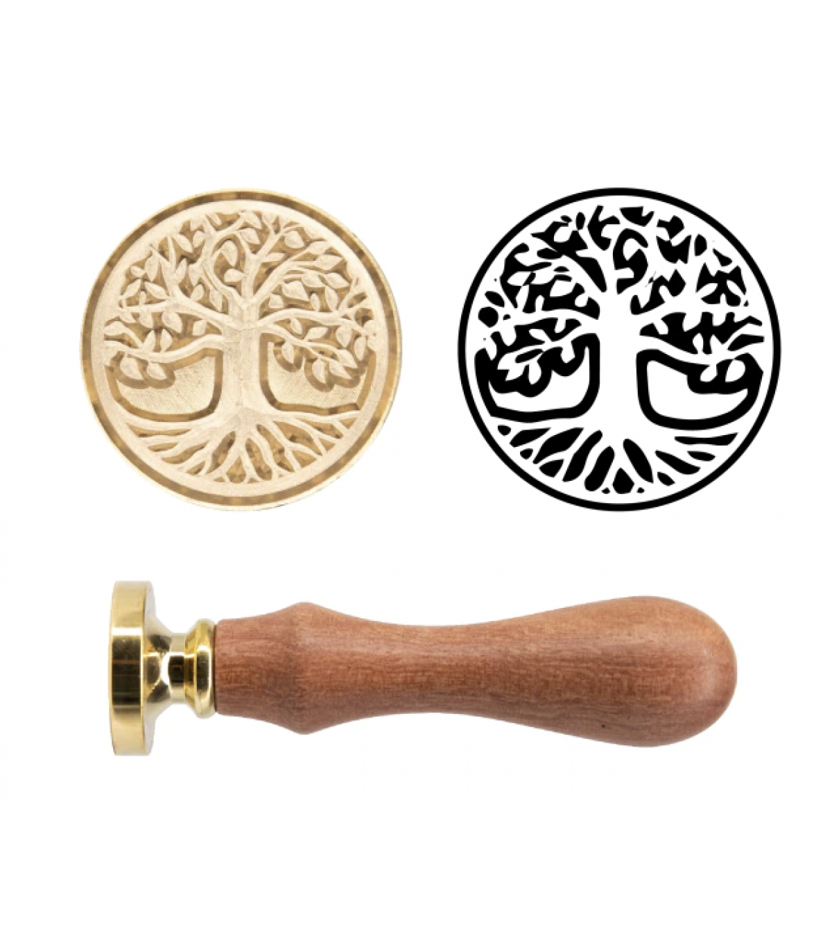 Sceau médaillon en bronze avec manche en bois pour sceller les lettres avec de la cire ou de la cire à cacheter.