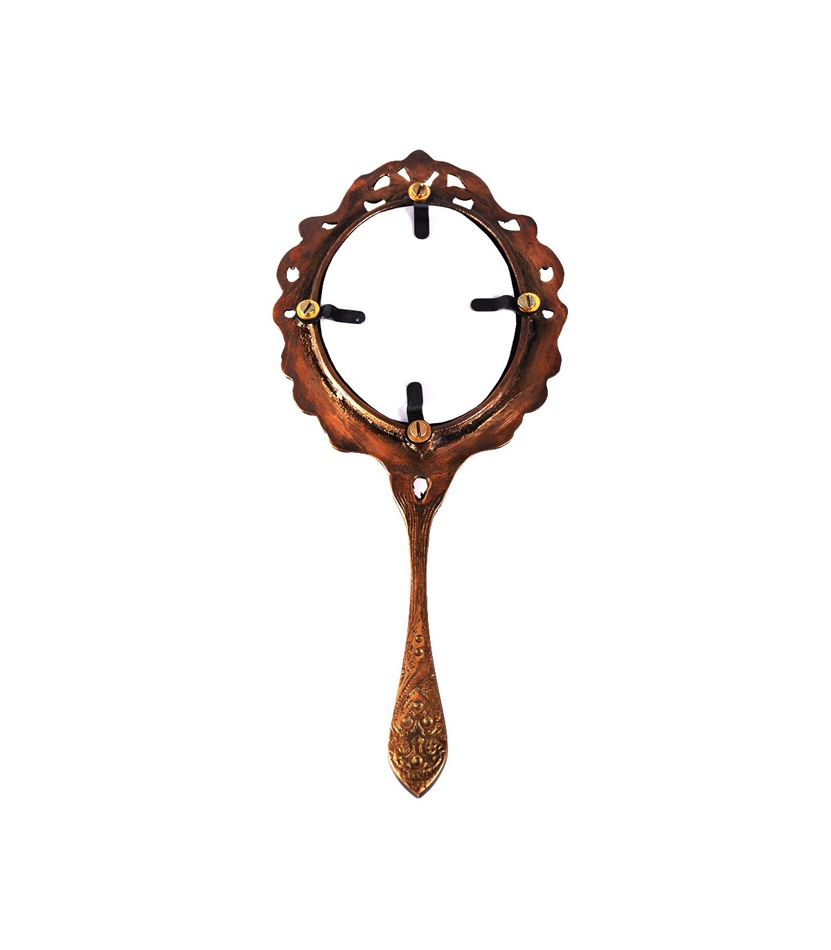 Miroir à main d'alpaga avec dessin floral et cailloux multicolores incorporées.Une pièce idéale pour les cadeaux et les collectionneurs.