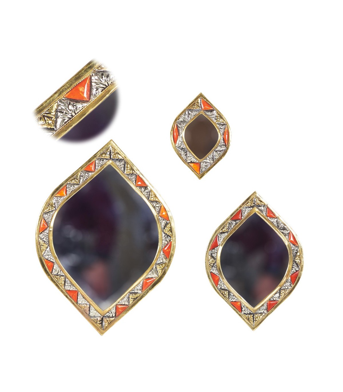 Ensemble de 2 miroirs en bronze. Ils ont un support arrière pour accrocher. Disponible de couleur laiton antique et bronze.