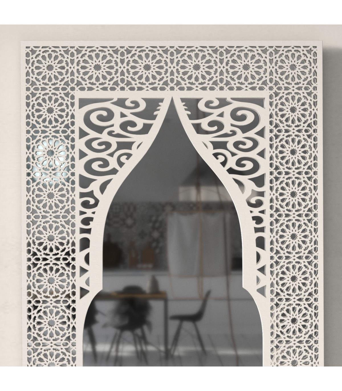 Miroir de style arabe fabriqué à la main par Jaima Alkauzar, avec du bois découpé au laser et assemblé à Grenade, produit 100% national.
