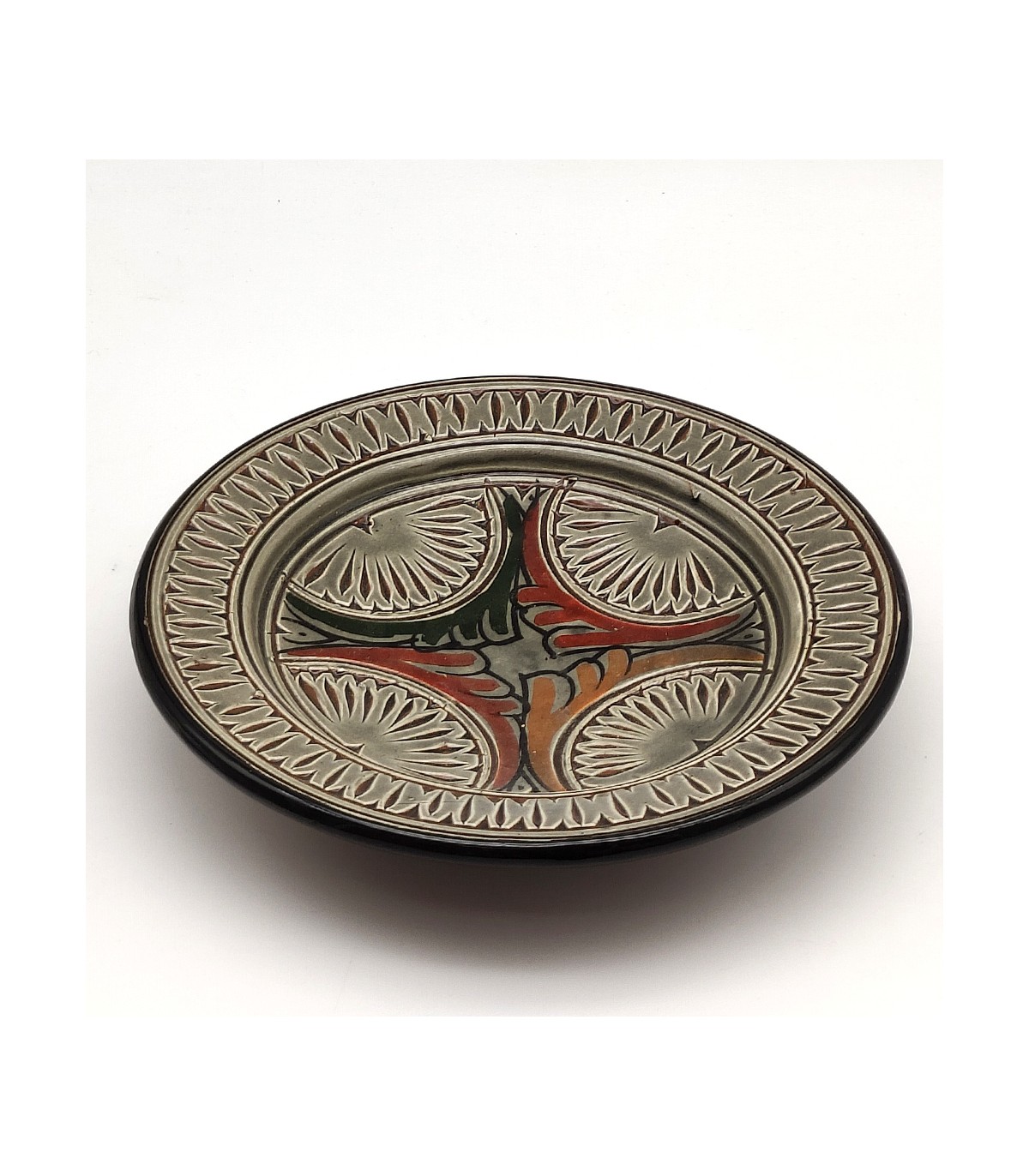 Plat pour la décoration arabe céramique émaillée et sculptée à la main pour acheter en ligne au meilleur prix. Poterie sculptée et peinte à la main de Safi, Maroc. Une ville connue pour ses potiers et ses céramiques uniques au monde.