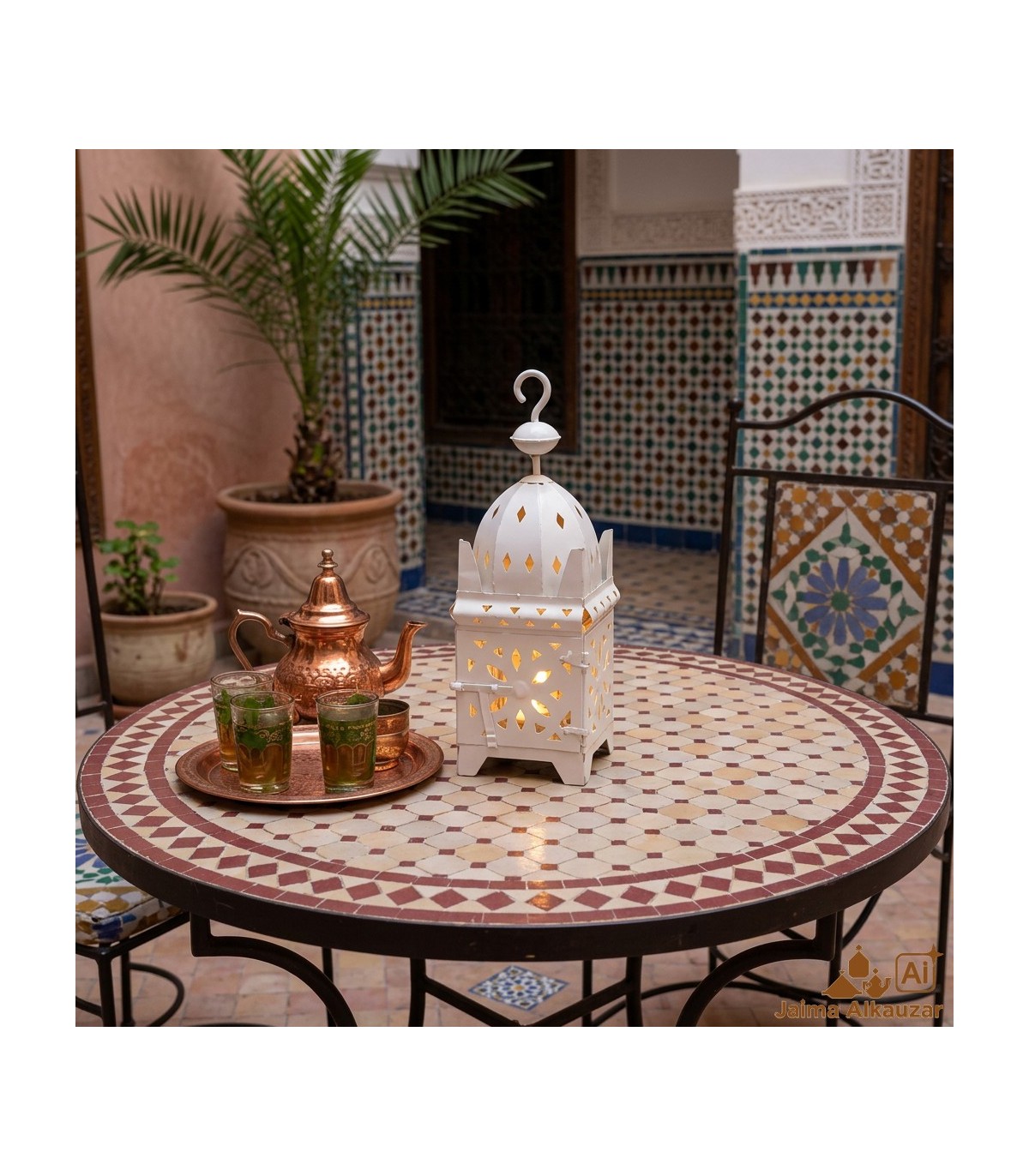 Lampe en fer faite à la main avec des mosaïques arabes ajourées. Crée un environnement idéal et de la lumière pour n'importe quel coin.Excellent pour l'intérieur et l'extérieur.Ils peuvent être utilisés directement...