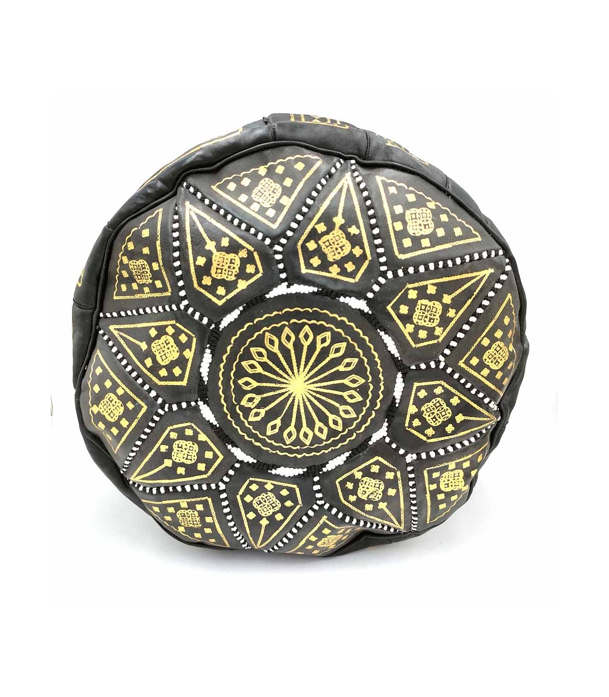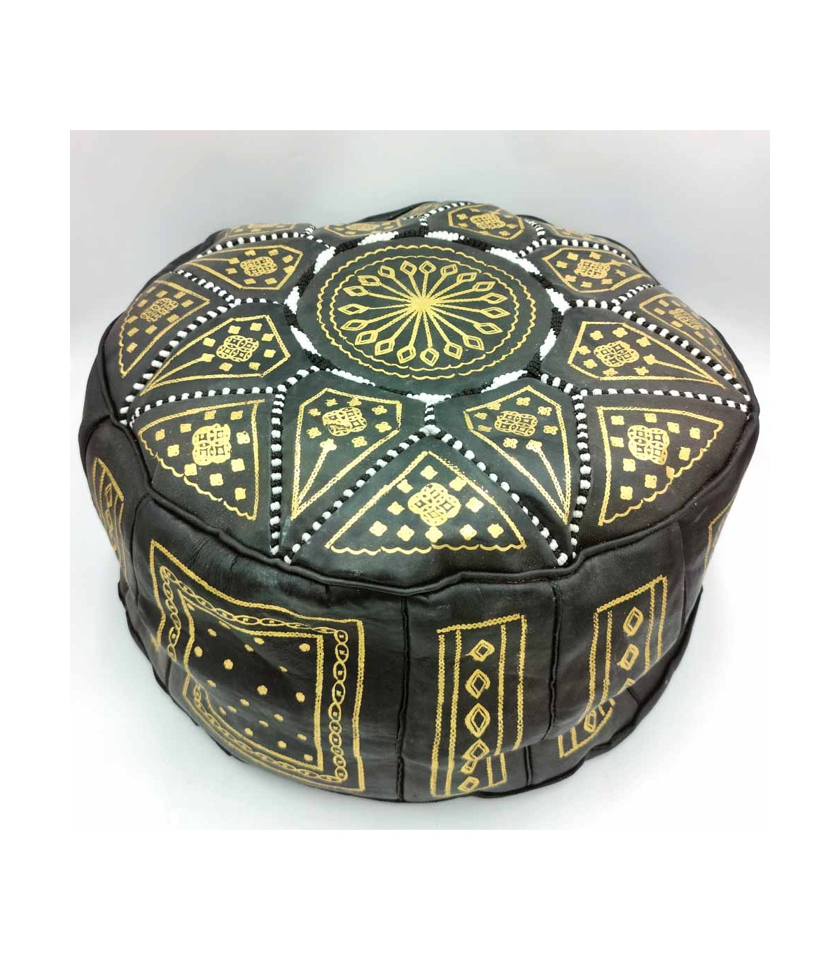 Cuir Arabe Puff 100% - Couleur Noir Artisanat Marocain - Modèle Aswad kaamil