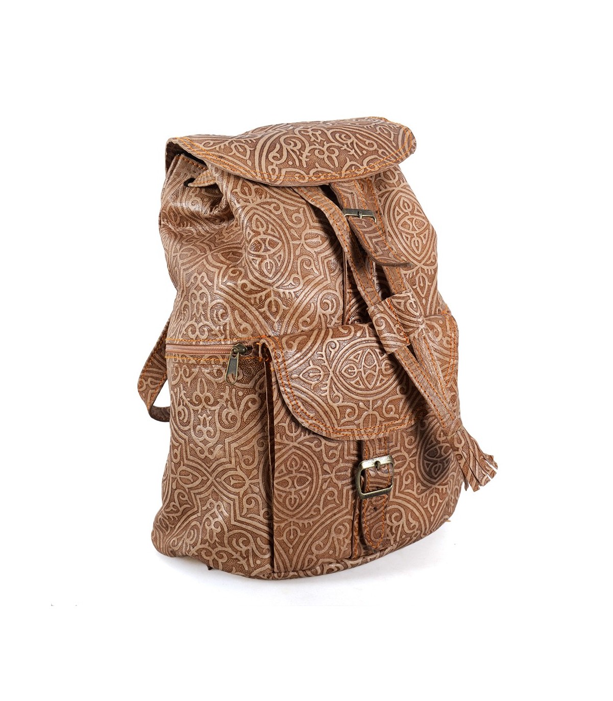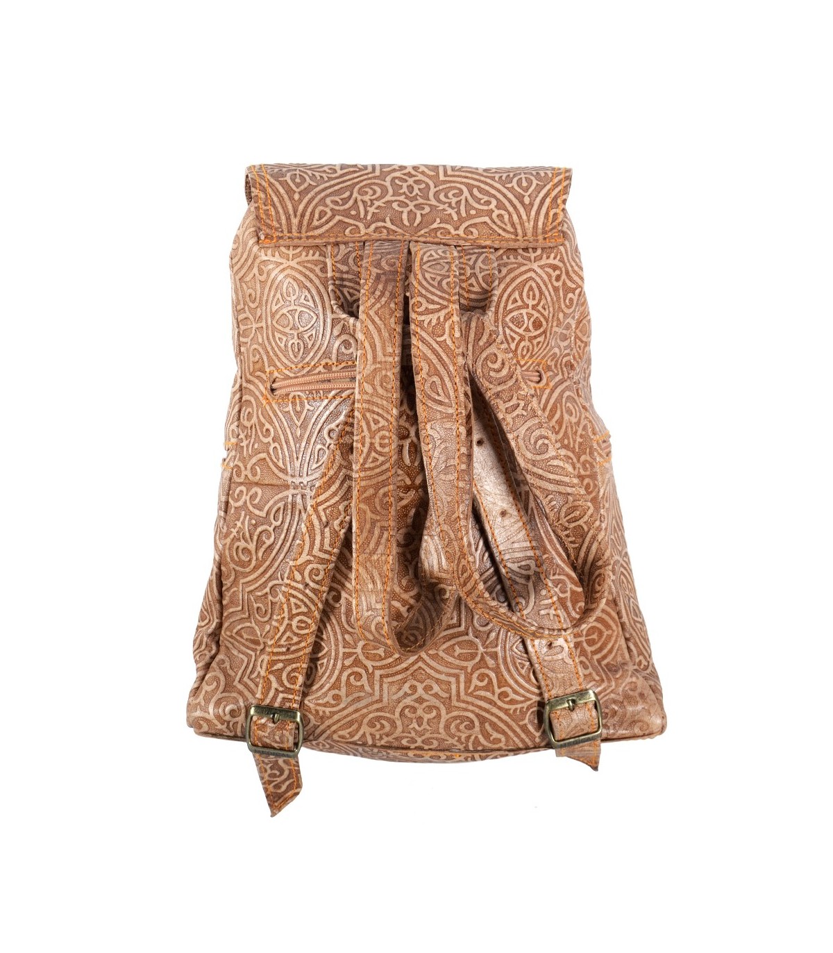 Sac à dos en cuir fait main. Fabriqué au Maroc Style Fesi. Maroquinerie de haute qualité. Idéal à utiliser comme sac ou pour des excursions. Taille très pratique parfaite pour les courts trajets.