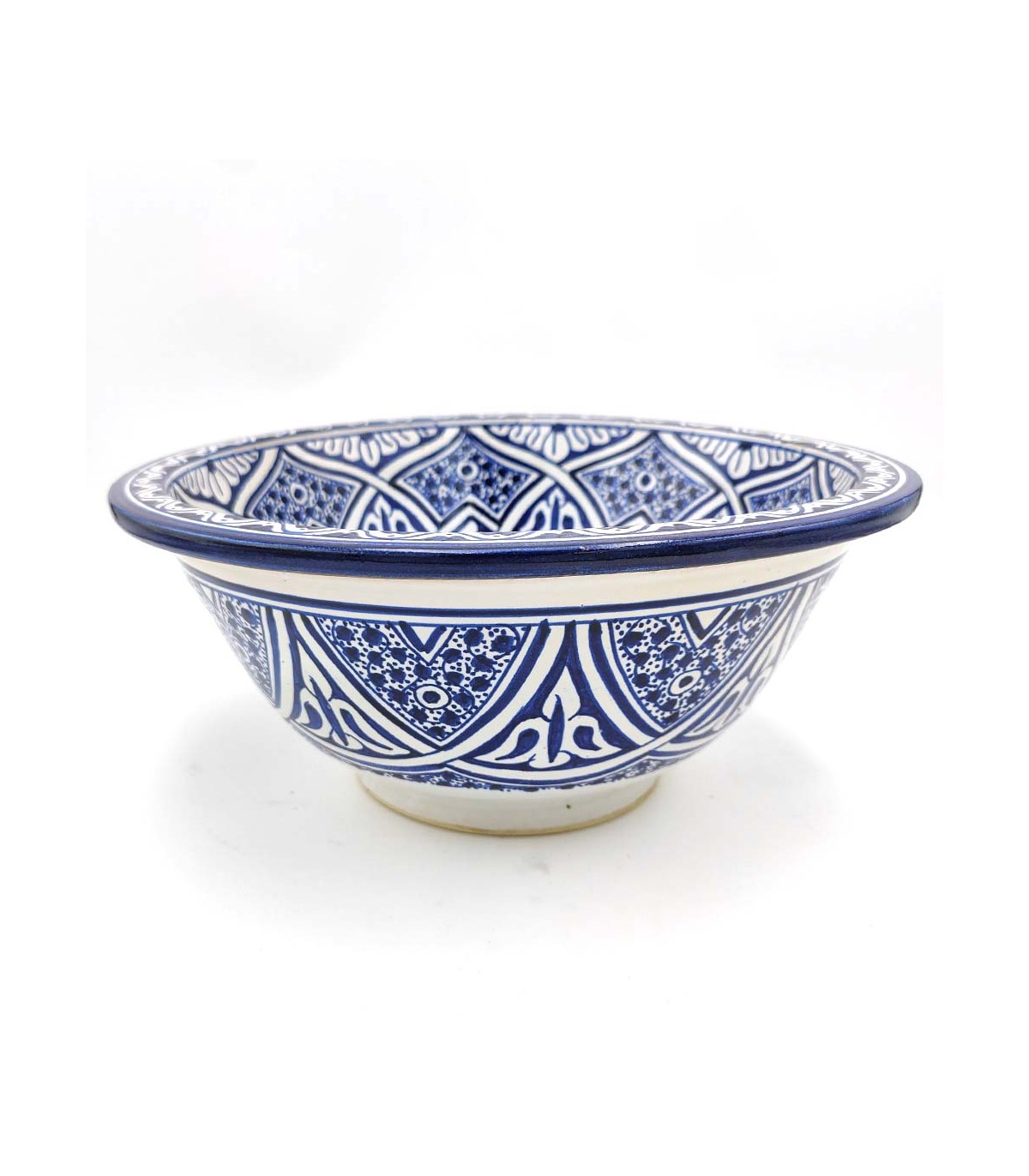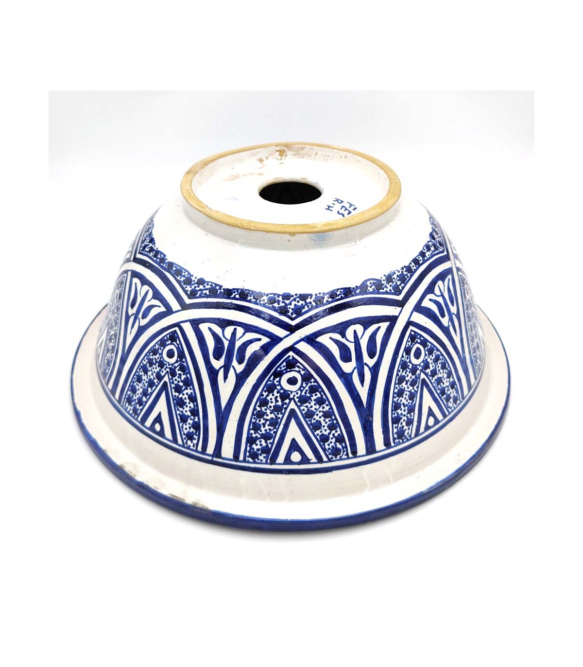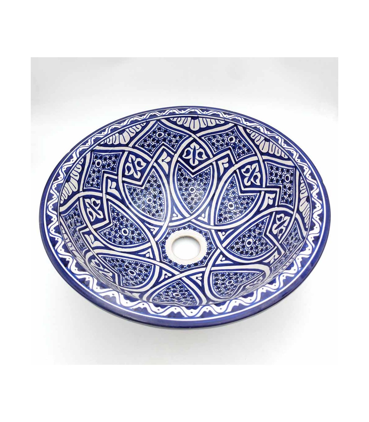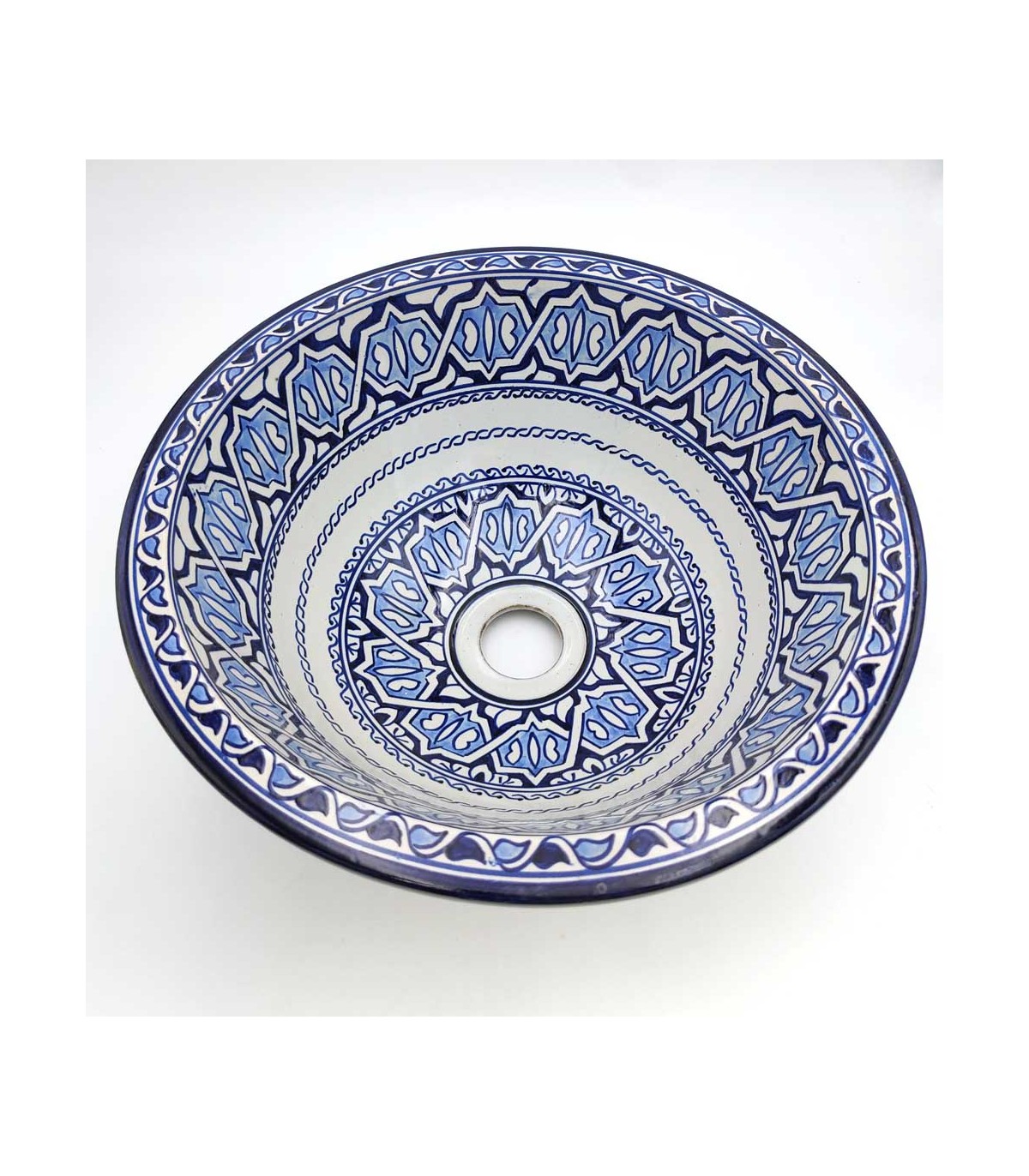 Vasque en céramique fabriquée à la main au Maroc par des maîtres artisans. Idéal pour recréer des décorations arabes, marocaines, andalouses, mauresques.