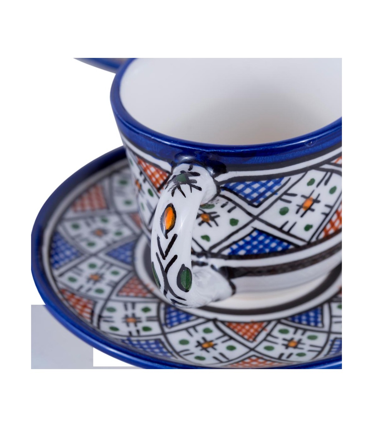 Ensemble de 6 verres à thé en verre turc et soucoupes en céramique. Fabriqué en verre trempé et céramique de haute qualité et décoré de motifs géométriques inspirés d'al-Andalus. Idéal pour boire du thé noir à la...