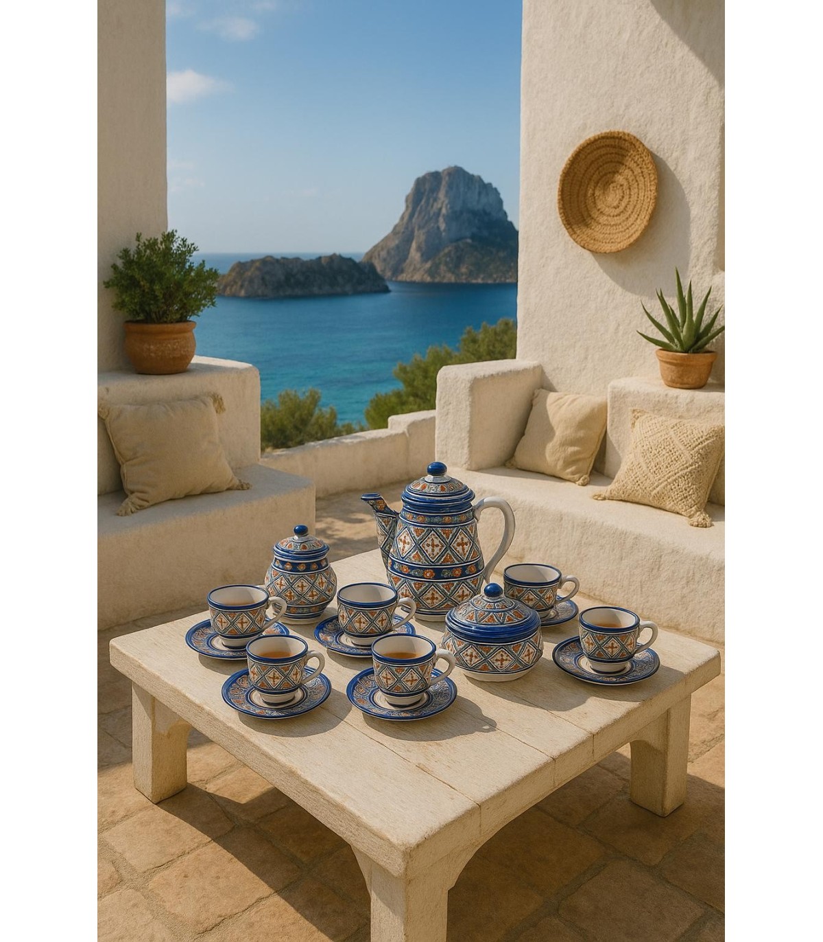 Chaque pièce est unique, peinte à la main à base de pigments naturels, avec une ligne fine créant des formes géométriques qui nous rappellent l'ethnie berbère.