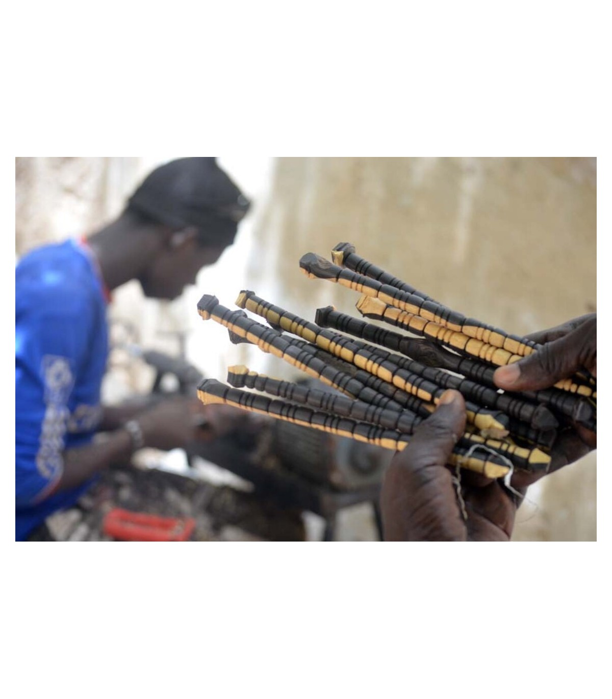 Bois d'ébène naturel de haute qualité Tasbih - Artisanat africain de Gambie - Perles Tiyani - Modèle Zawiya
