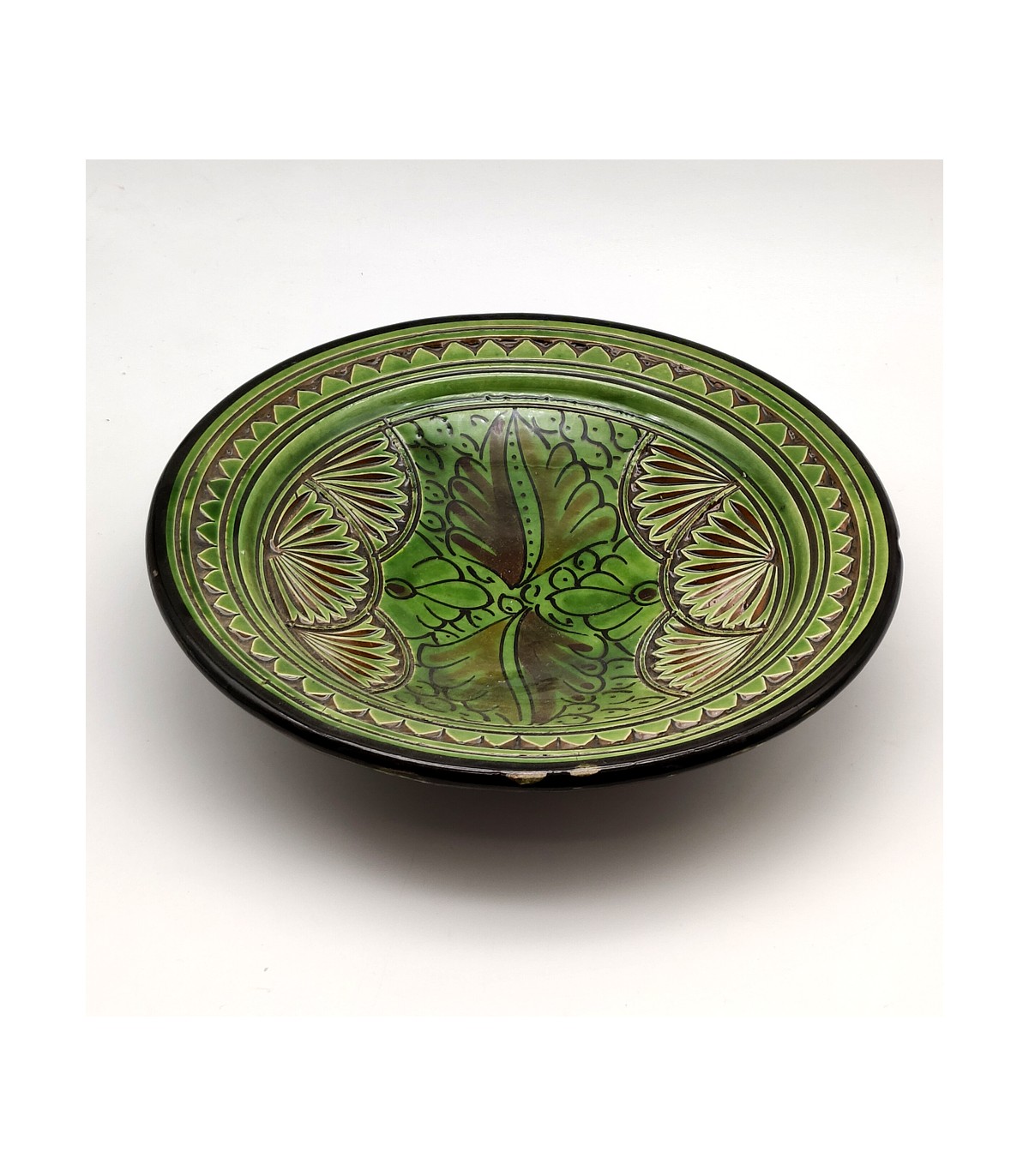 Plat pour la décoration arabe céramique émaillée et sculptée à la main pour acheter en ligne au meilleur prix. Poterie sculptée et peinte à la main de Safi, Maroc. Une ville connue pour ses potiers et ses céramiques uniques au monde.